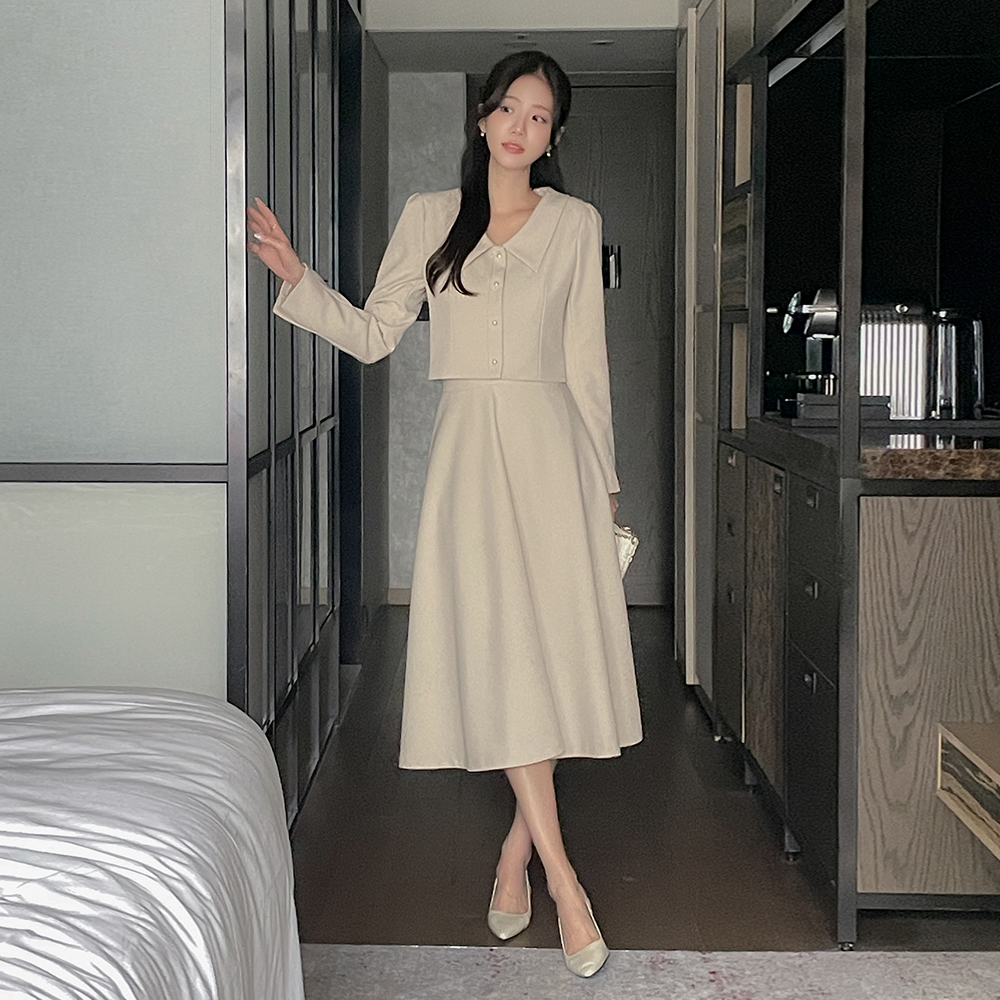 Grace 翻领 珍珠 7分裤 Set-up 夹克