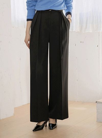 摩登 细褶 宽绰 宽松长裤(+腰带)