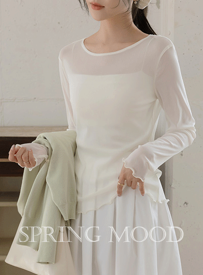 细密 圆领 透视 T恤衫