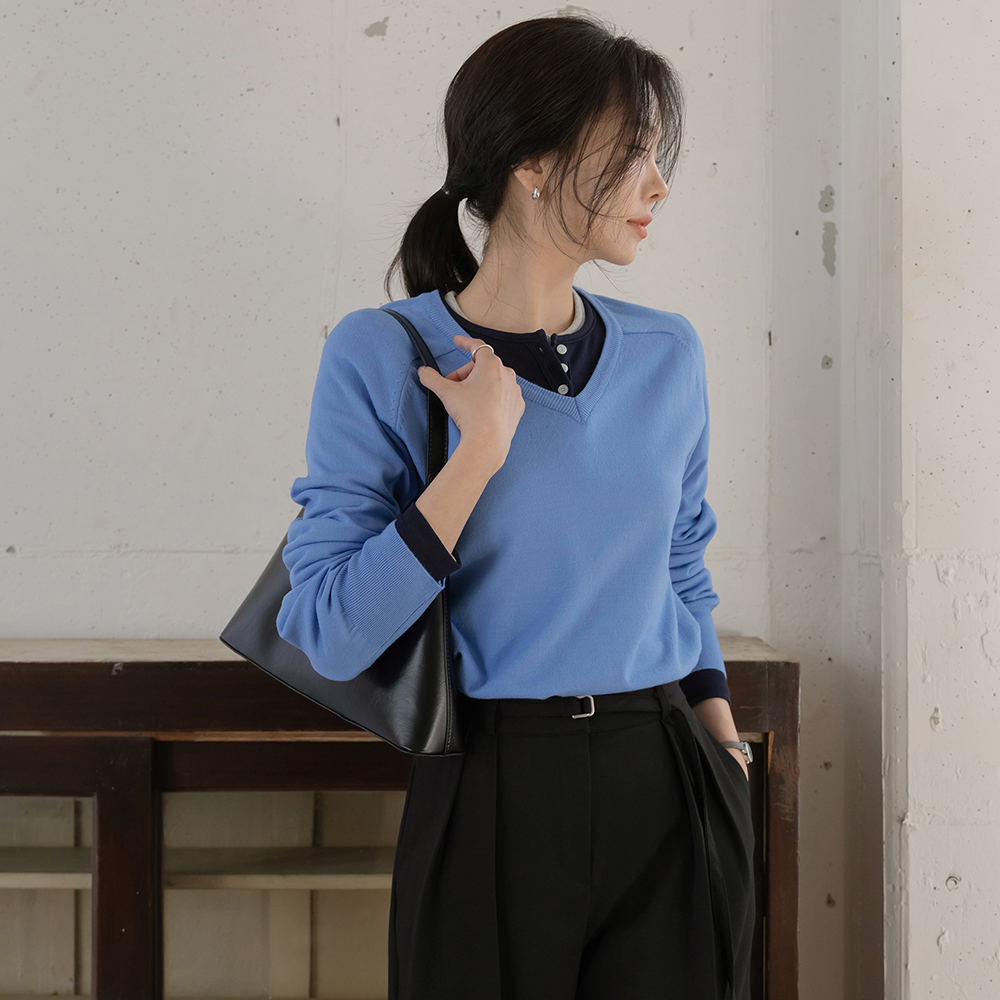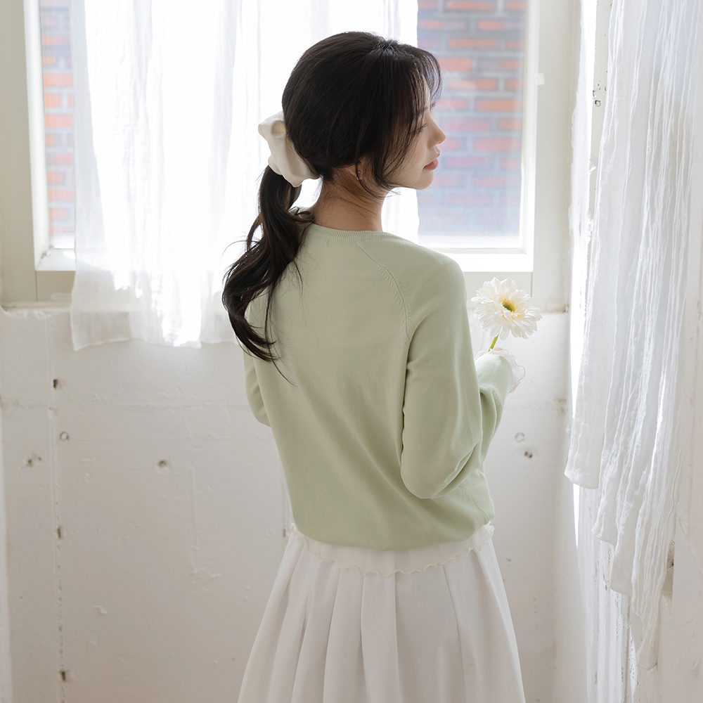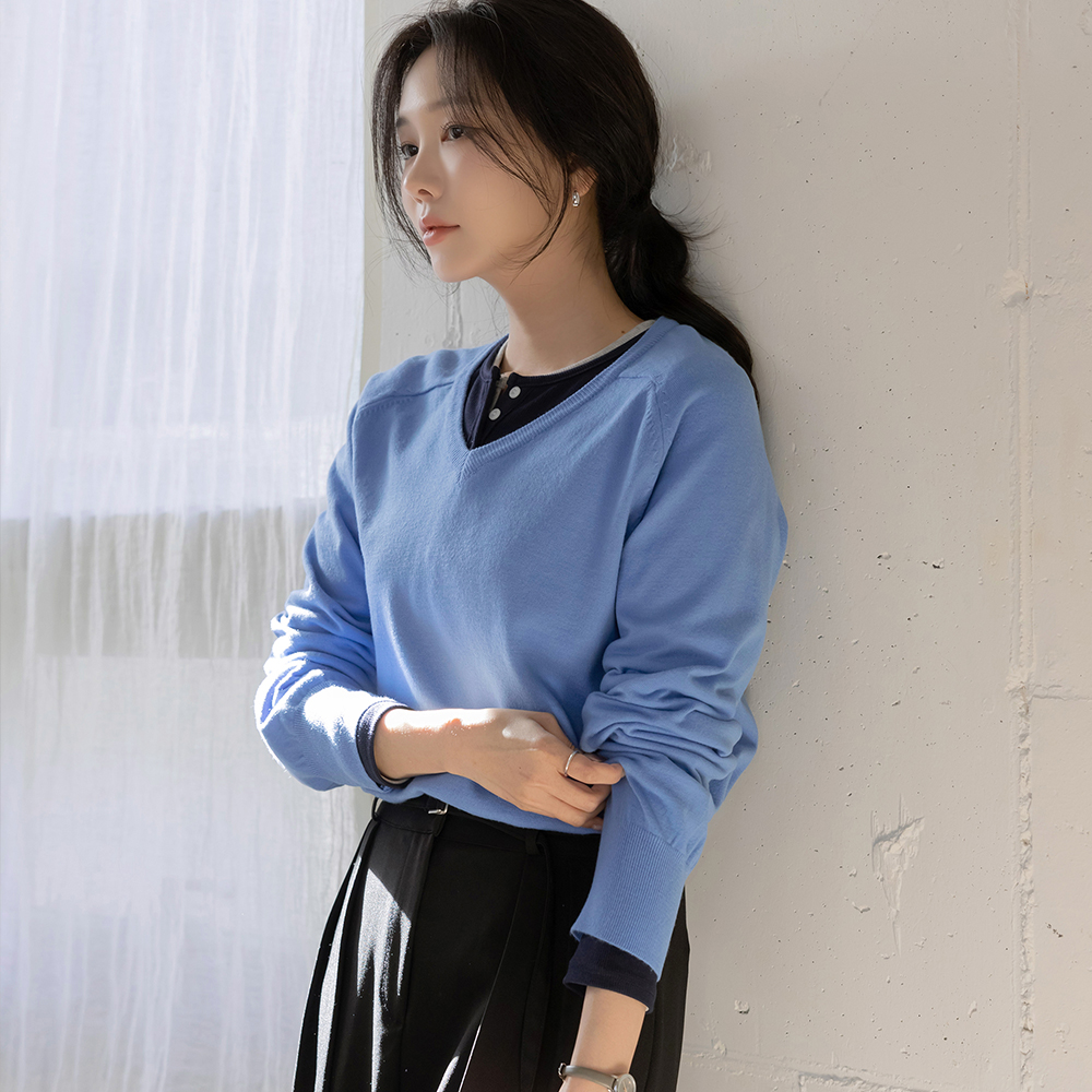 圆领 반버튼 莫代尔 条绒 T恤衫