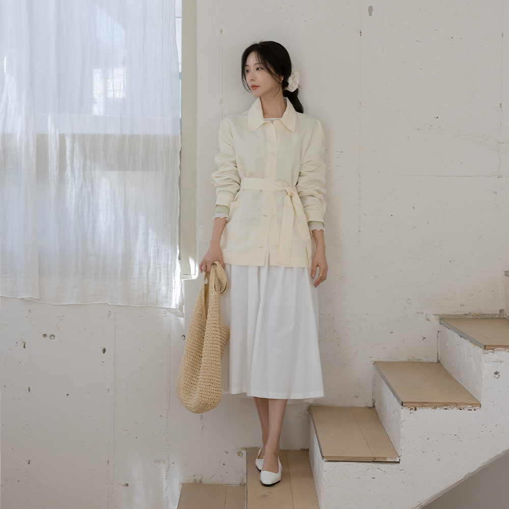 雏菊 后侧松紧带 褶边 裙子