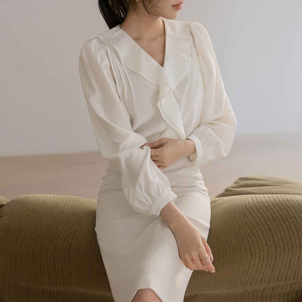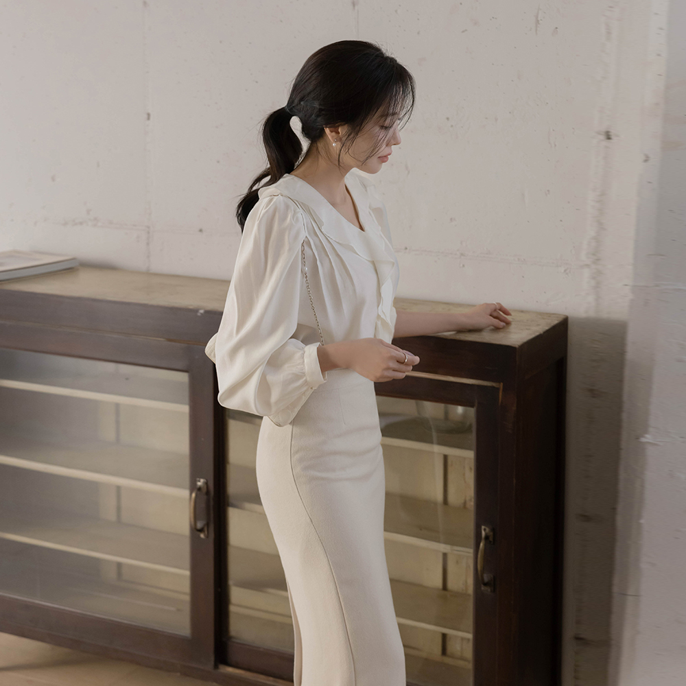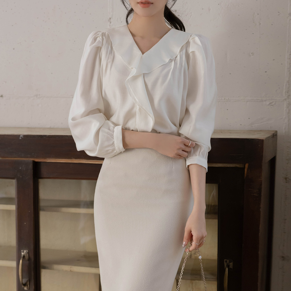 女性化的 褶裥 罩衫(Spring)