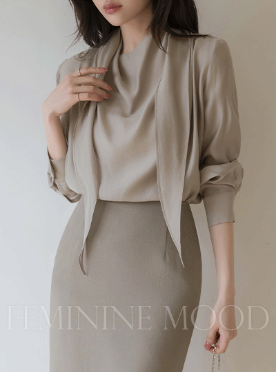 围巾领 透视 长袖 罩衫
