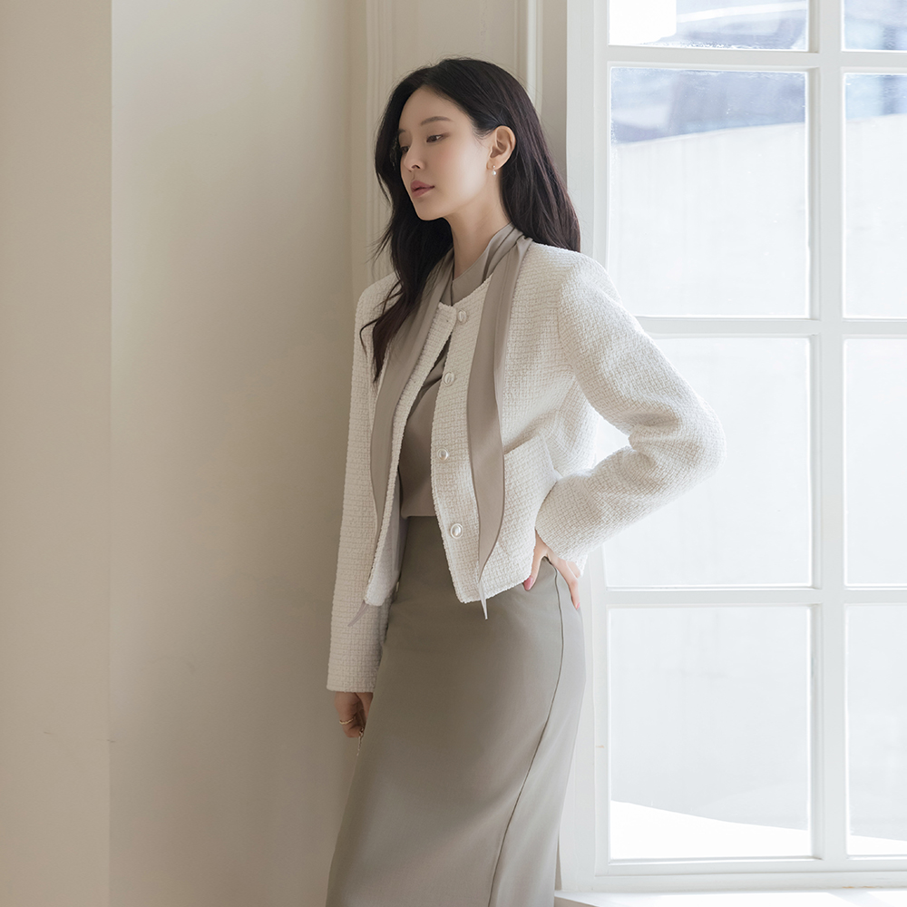 围巾领 透视 长袖 罩衫