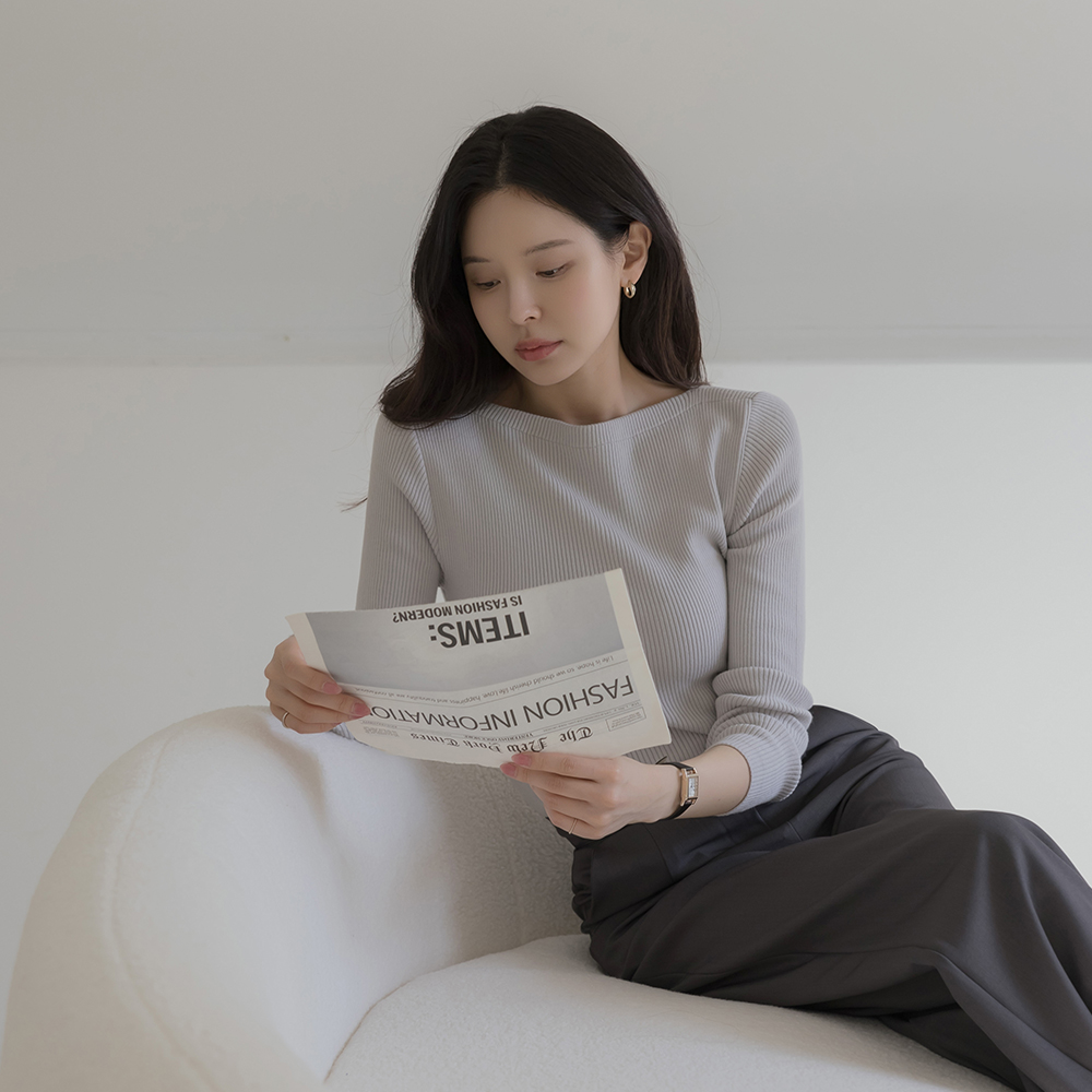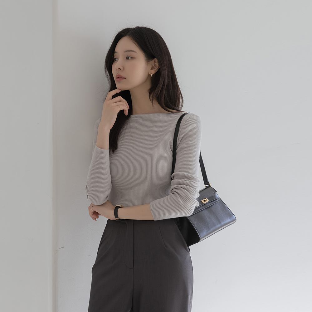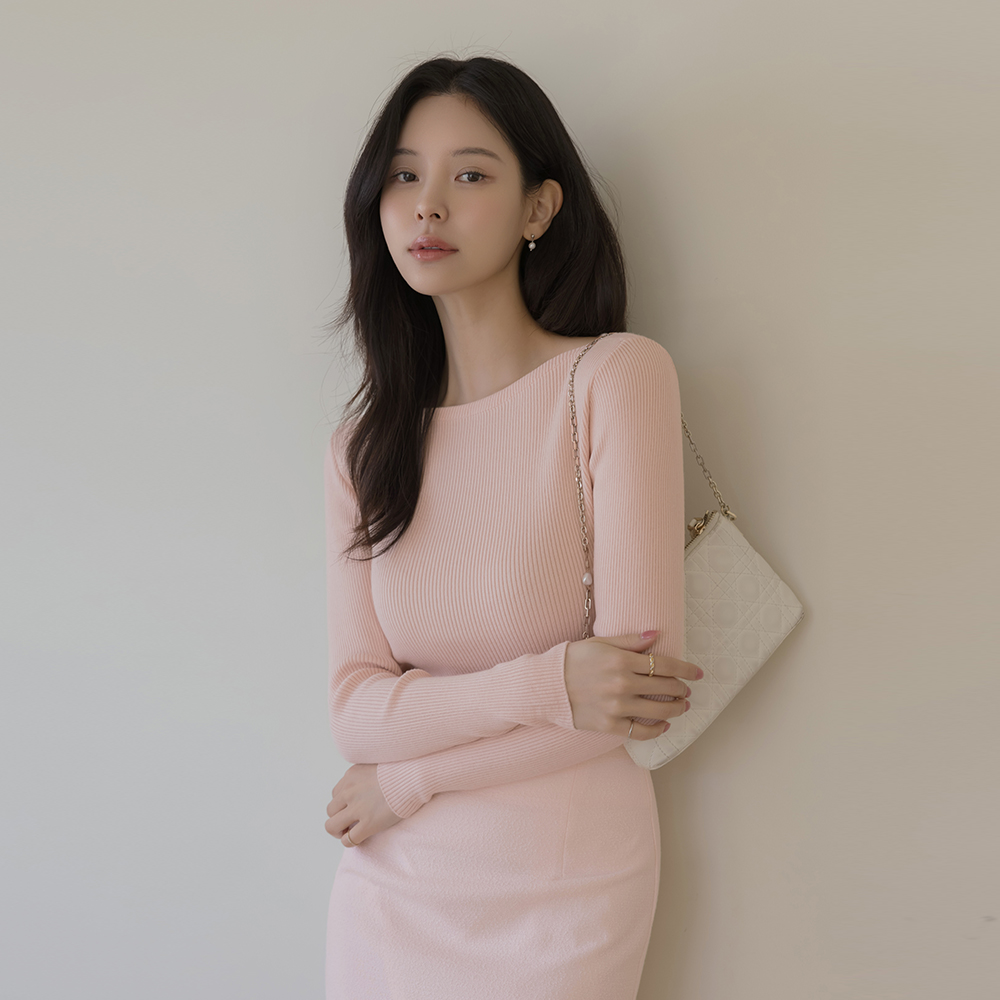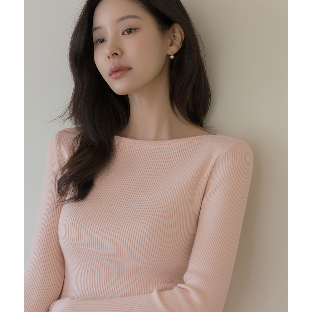 嘴唇领 颜色 条绒 长袖 针织衫