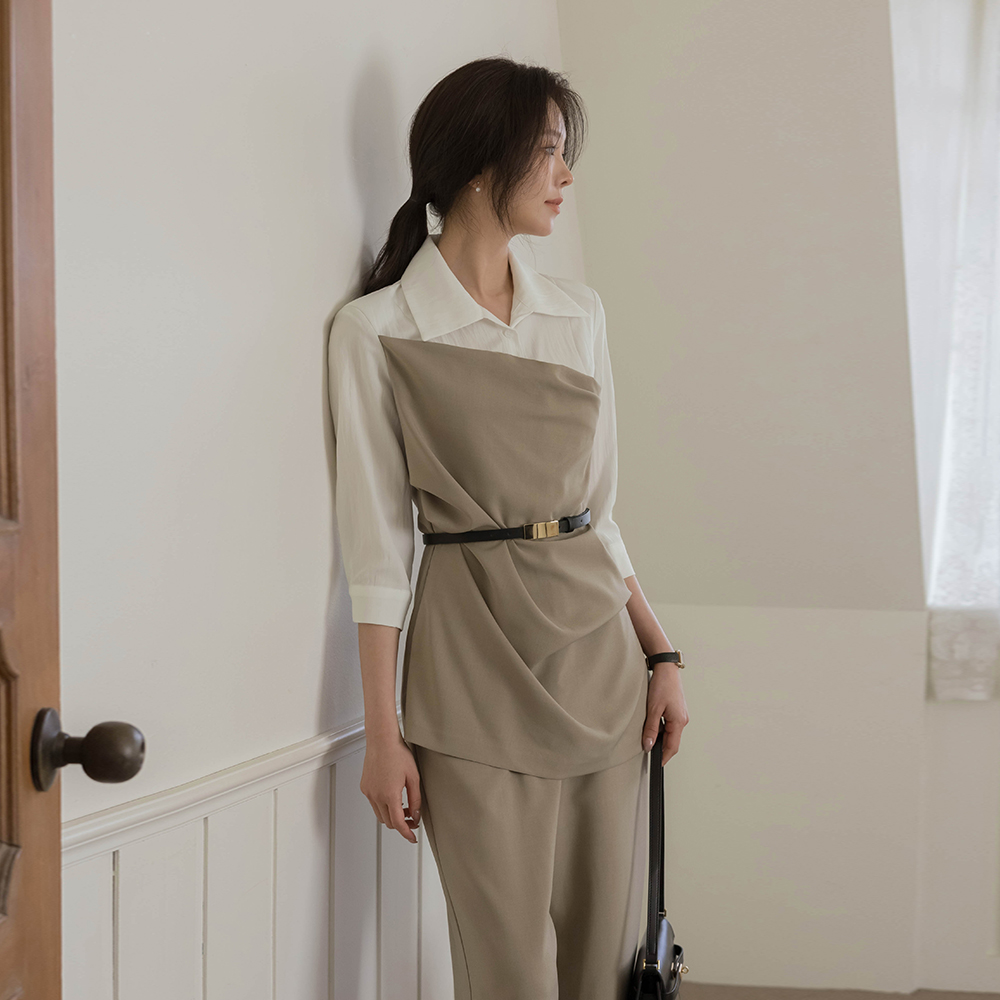 衬衫 分层 连体裤(+腰带)