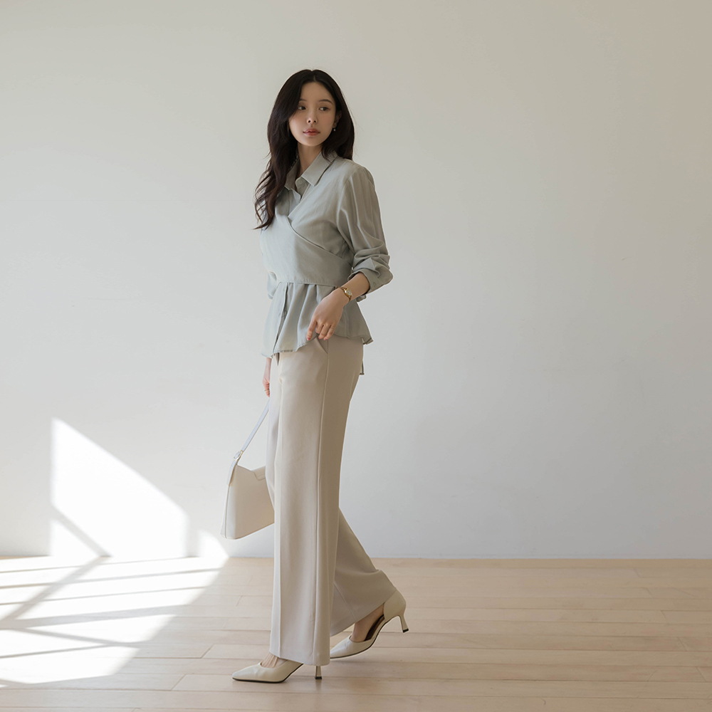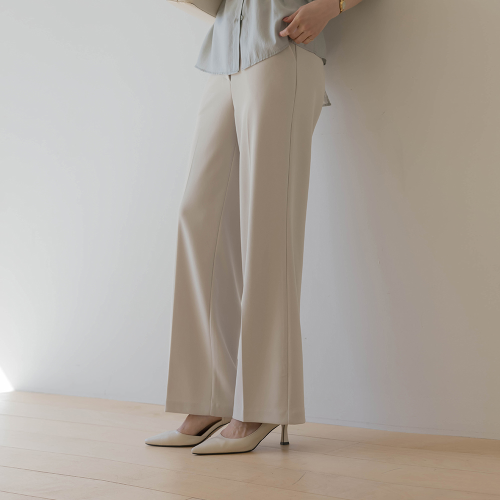 麻糬 弹力 里面松紧带 一字型 宽松长裤