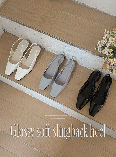 有光泽 柔丝 Square Toe 露脚后跟鞋 高跟鞋