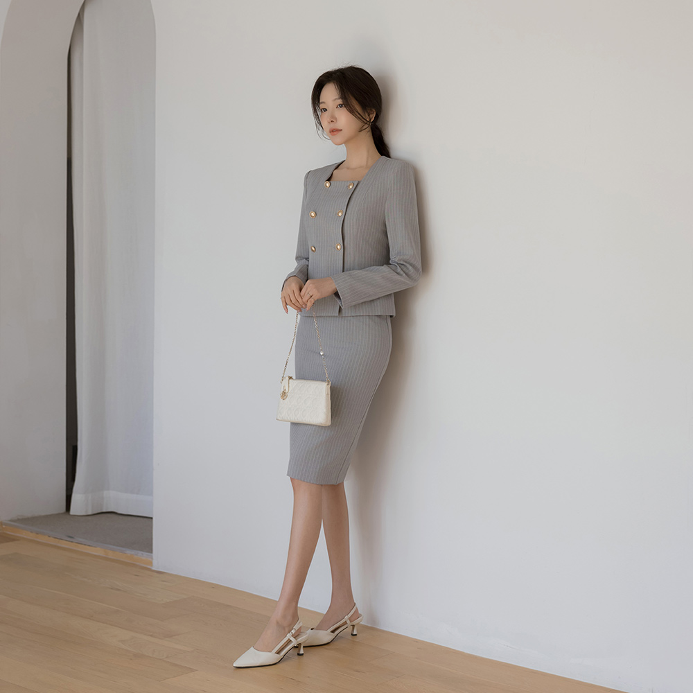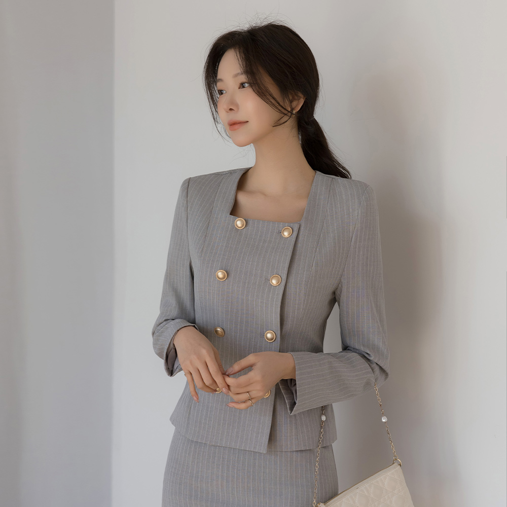 루미 方领 条纹 Set-up 夹克