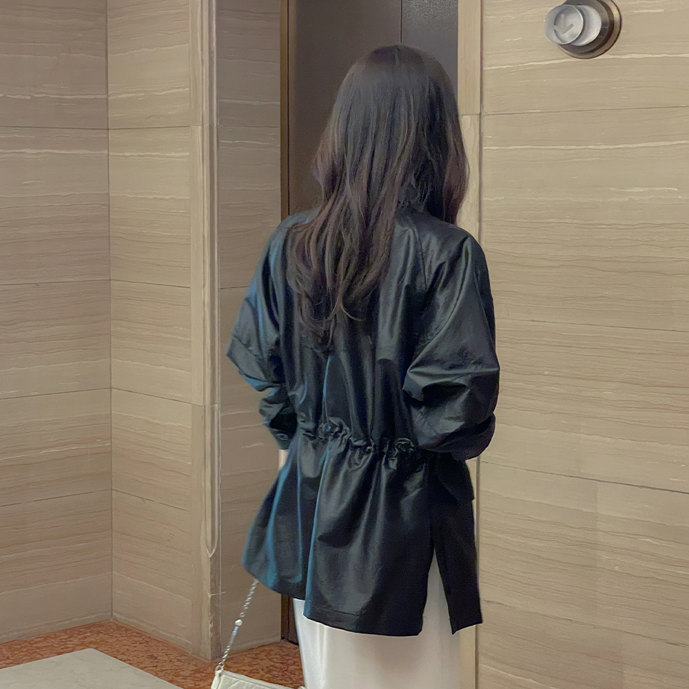 [O:neul] 纯正 丝滑 触摸 系带绳子 半高领 T恤衫