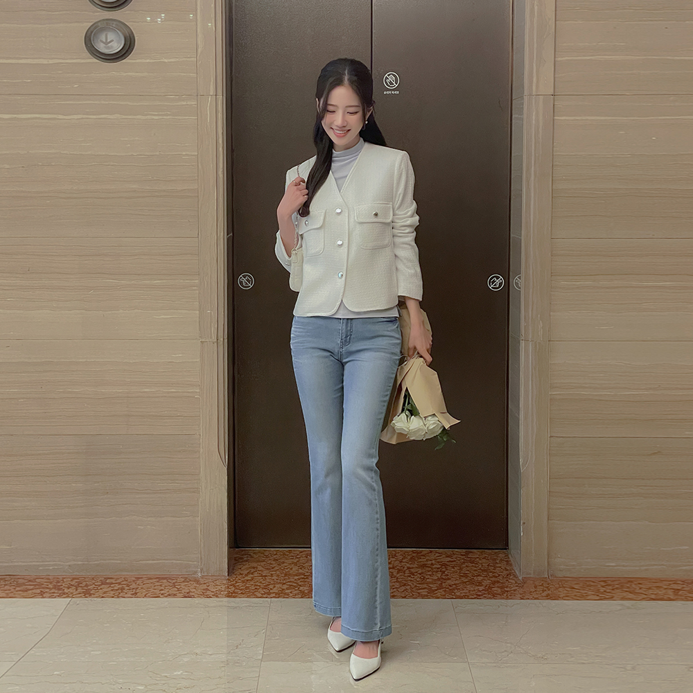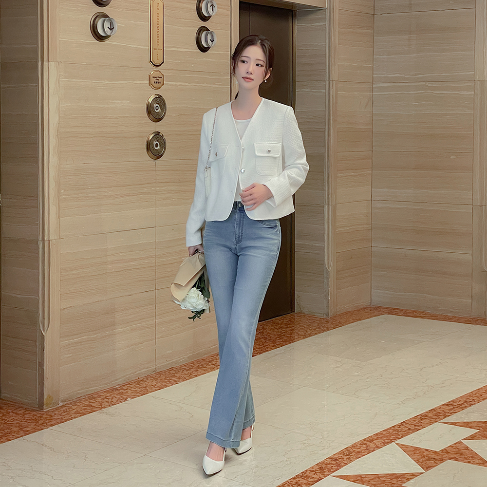 柔丝 麻糬 松紧带 喇叭 牛仔色 裤子