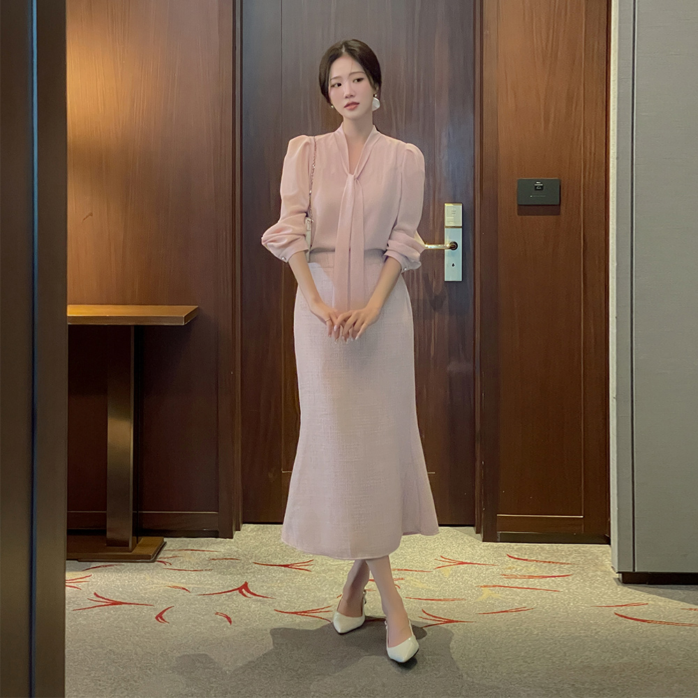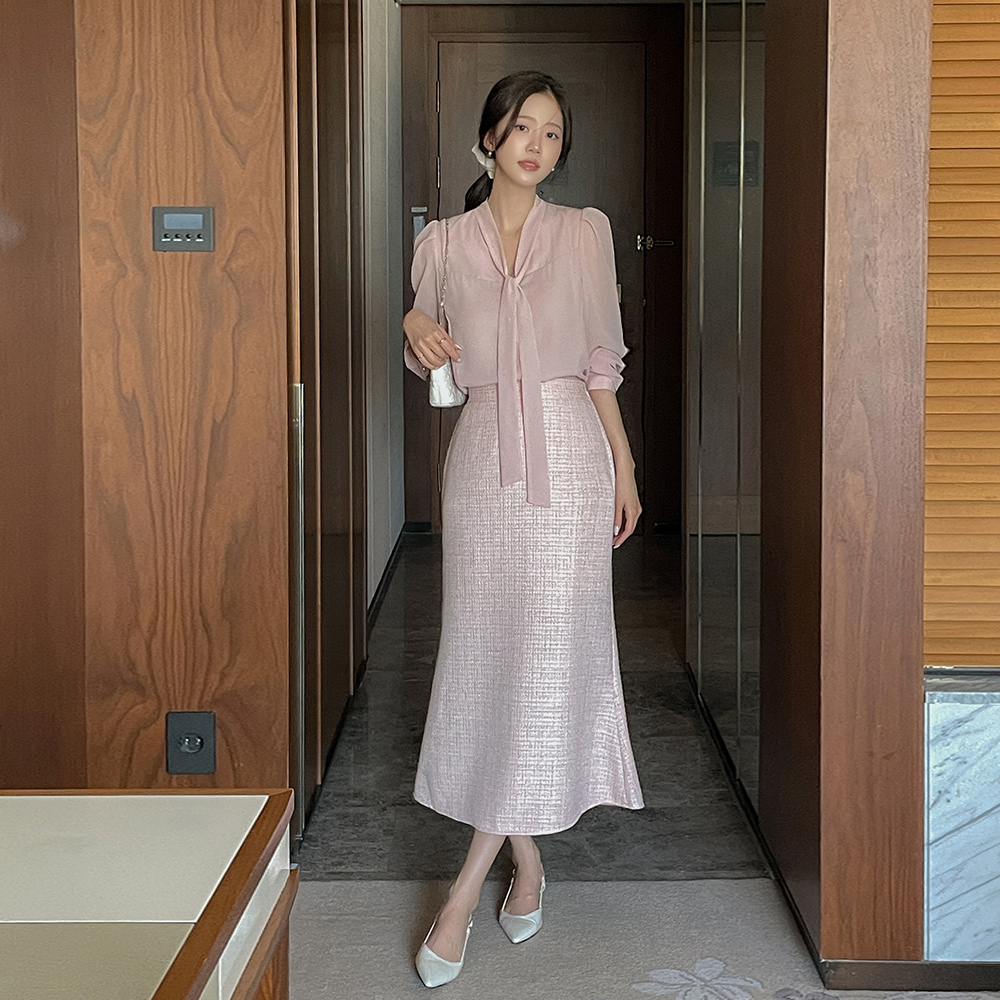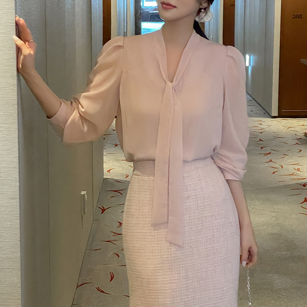 领带 袖 透视 配色 罩衫(Spring)