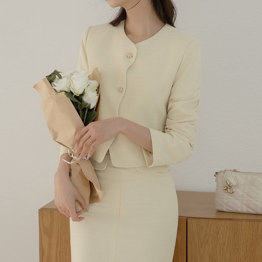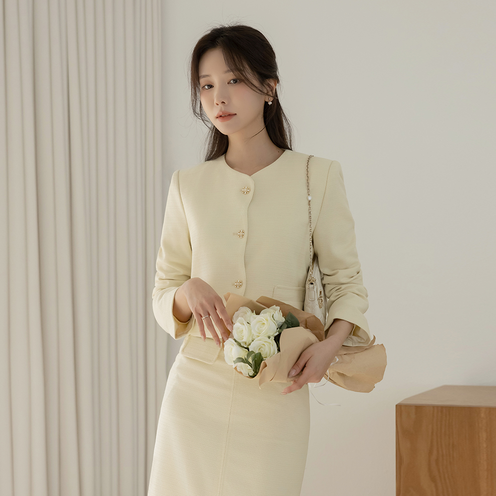 엘레나 波浪卷 粗呢 Set-up 夹克(Spring)