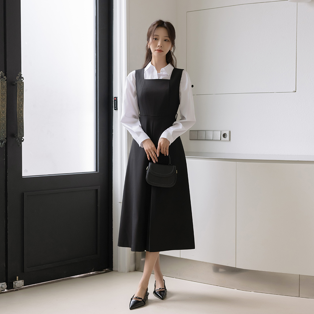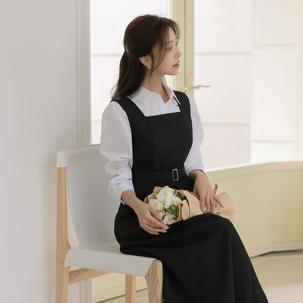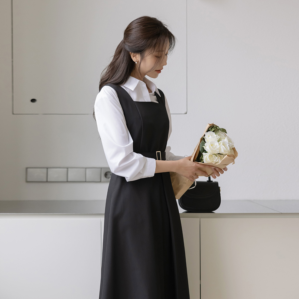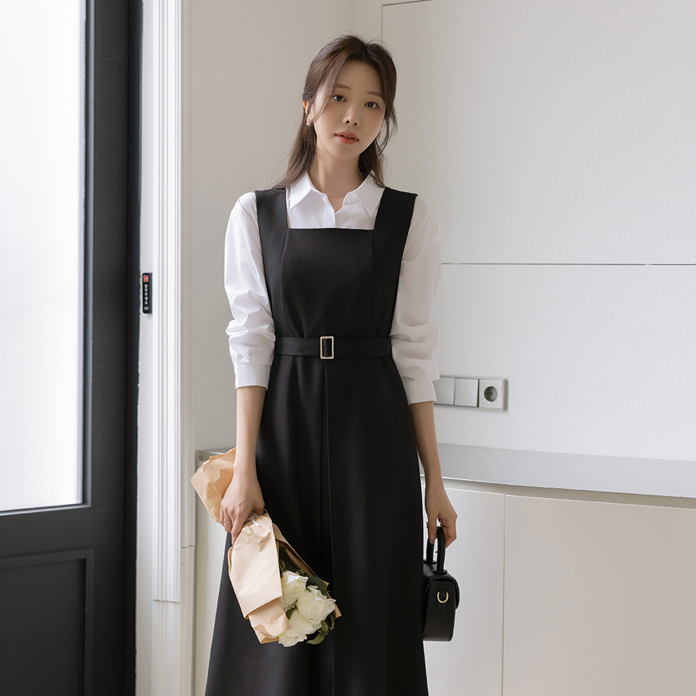 方领 A字型 吊带 连衣裙(+腰带)