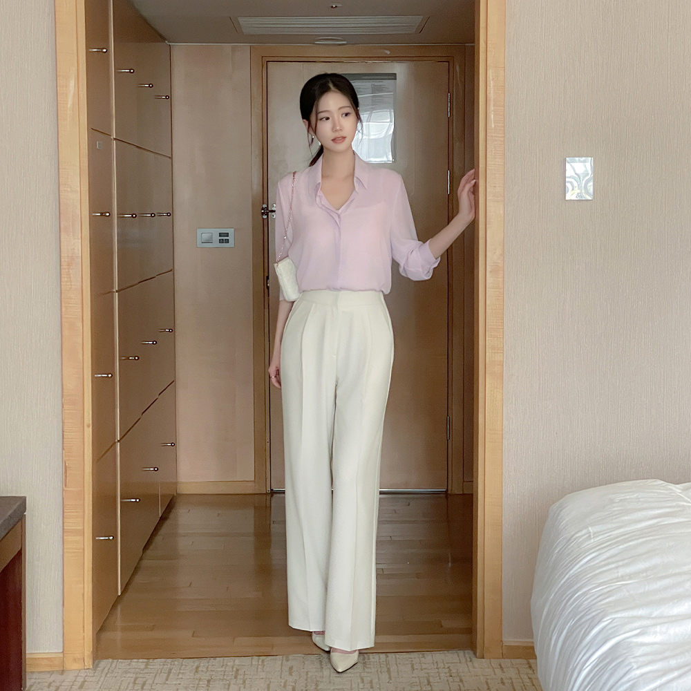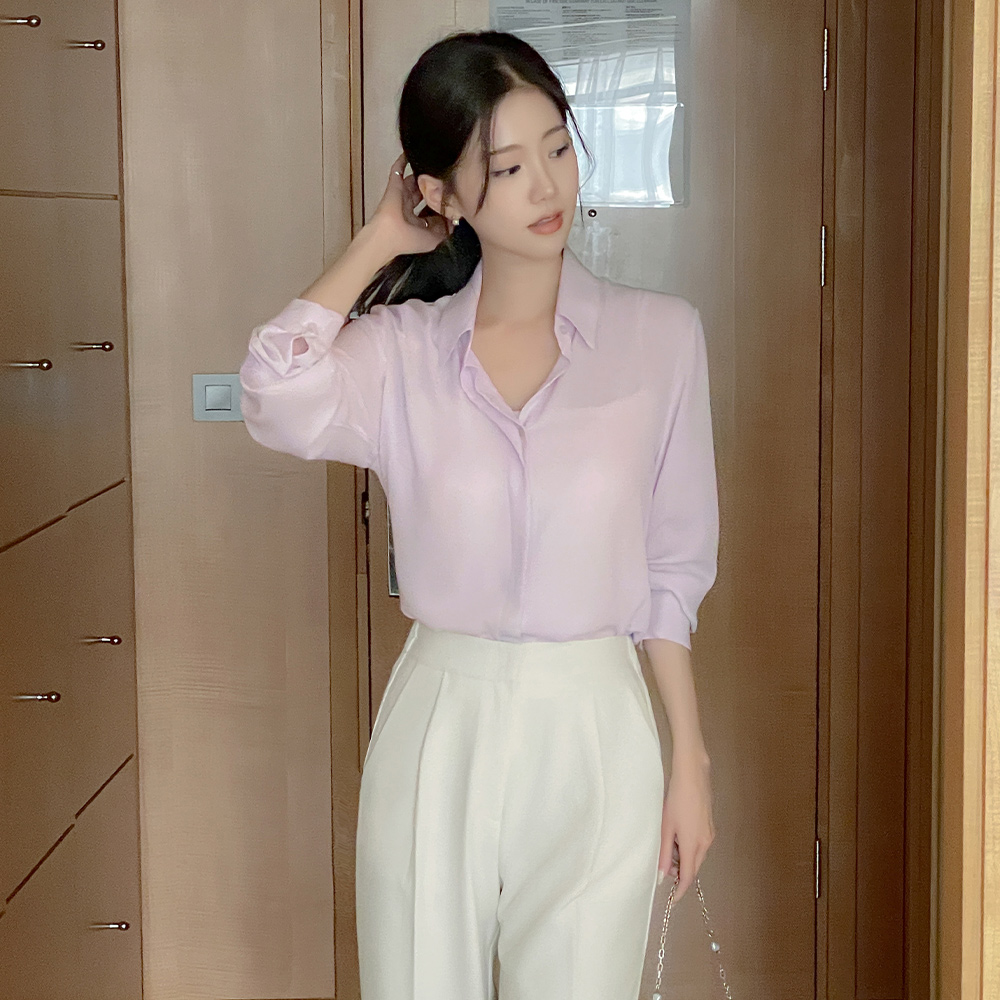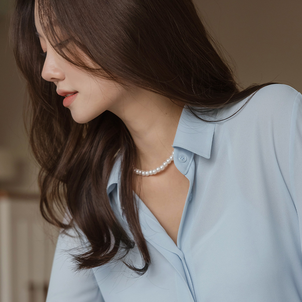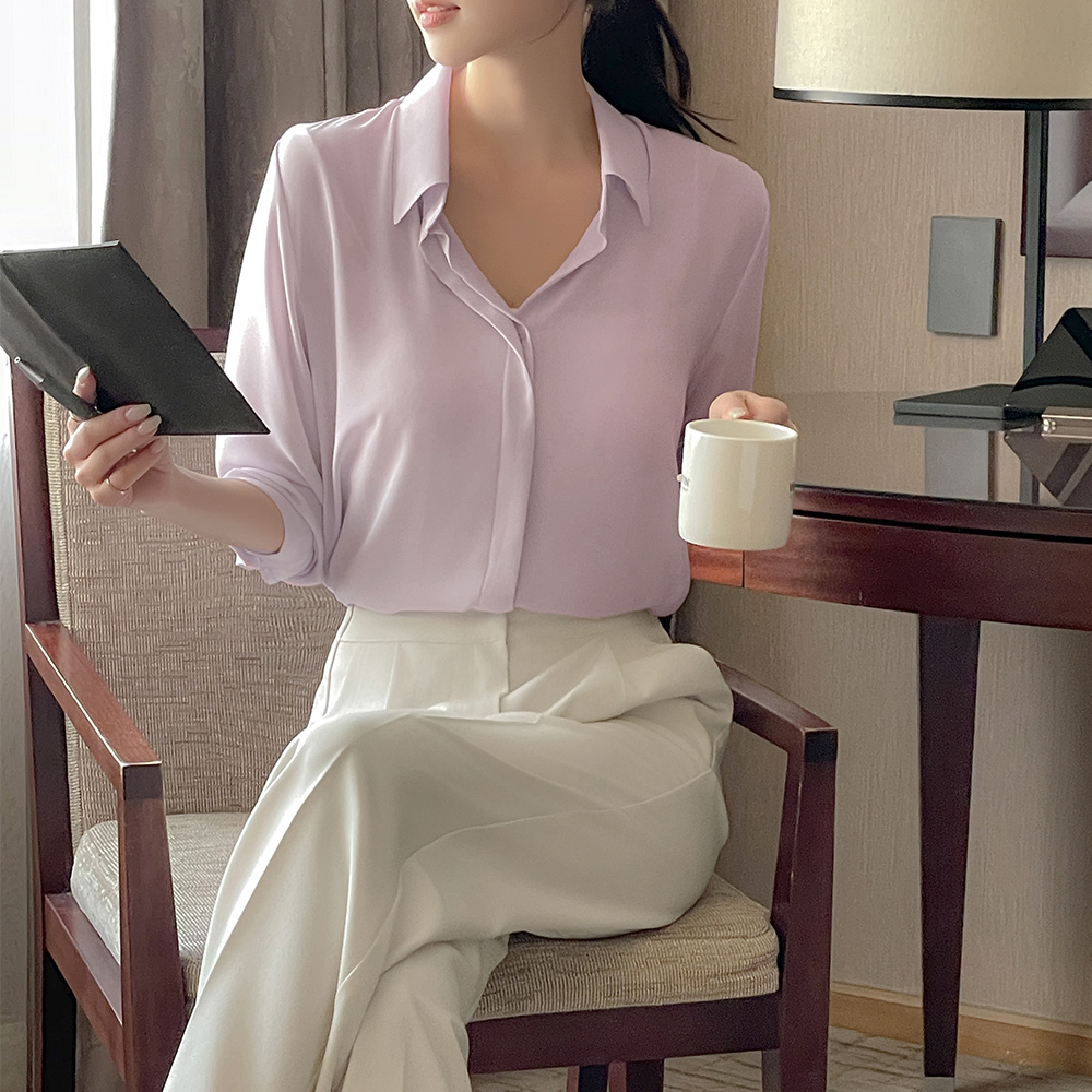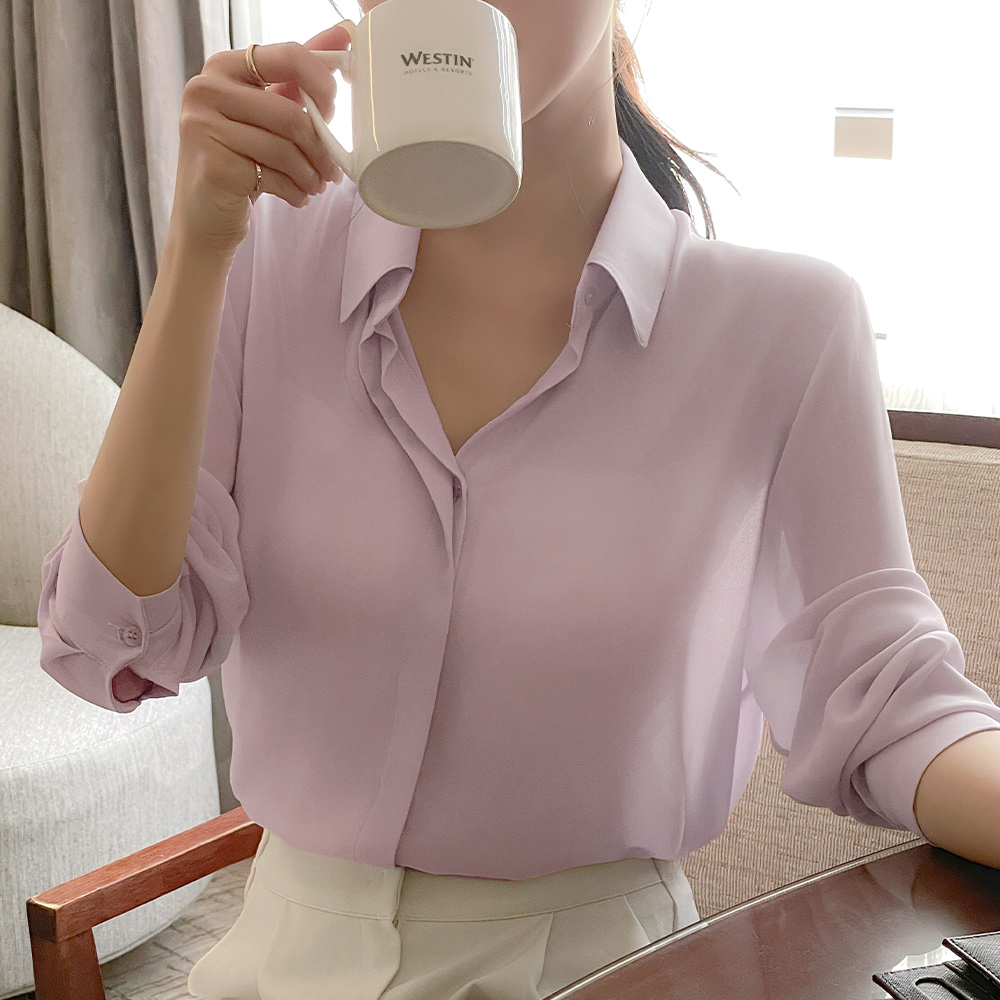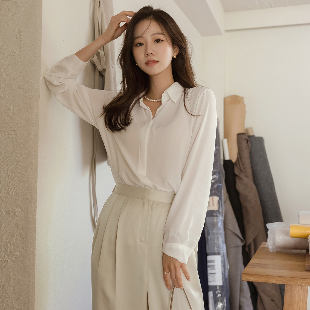 轻飘飘 苗条 情调 隐藏 扣子 基本 블라우스Ⅲ