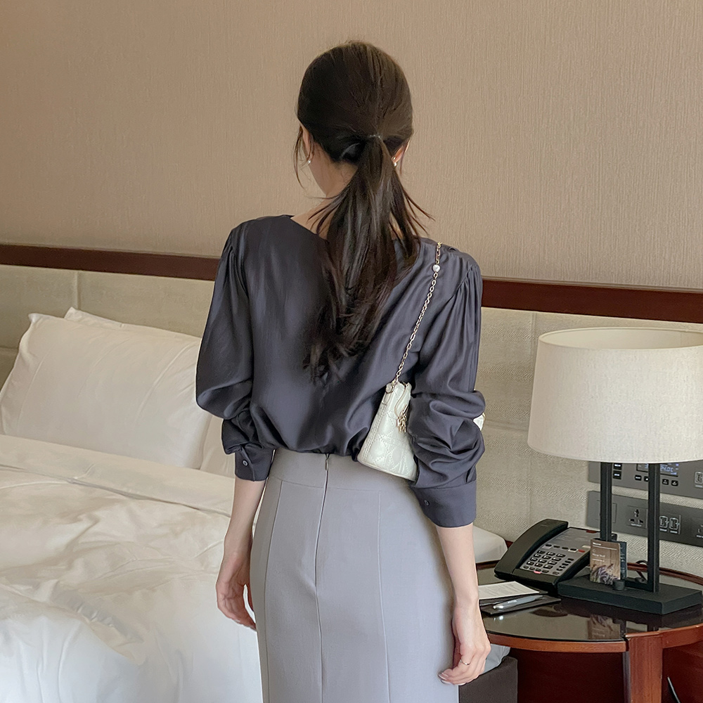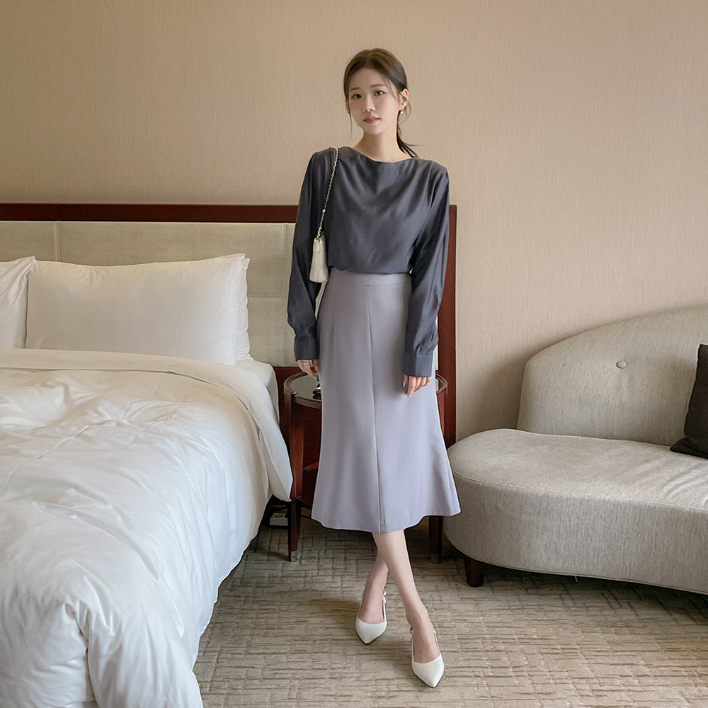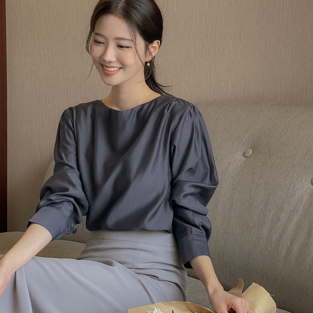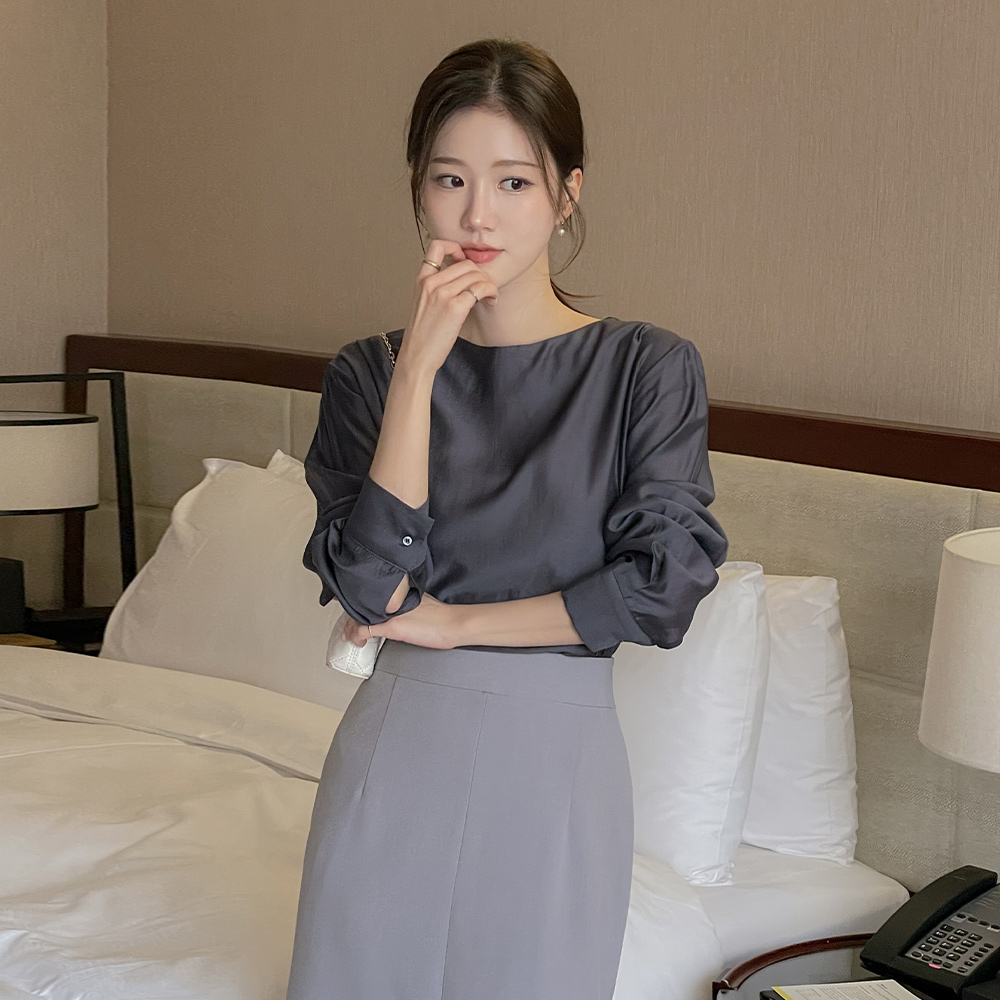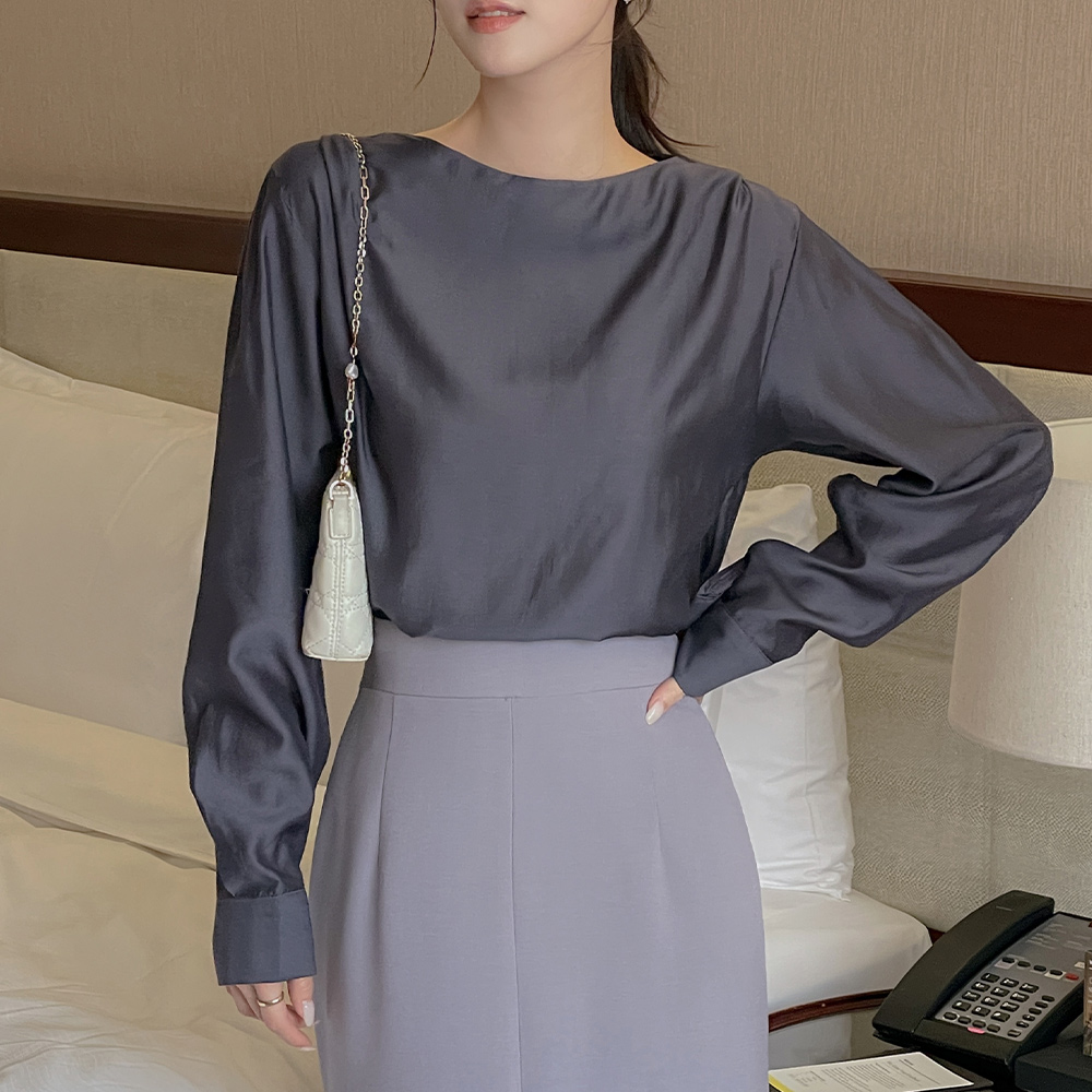 벨라 天丝 船形领 长袖 罩衫