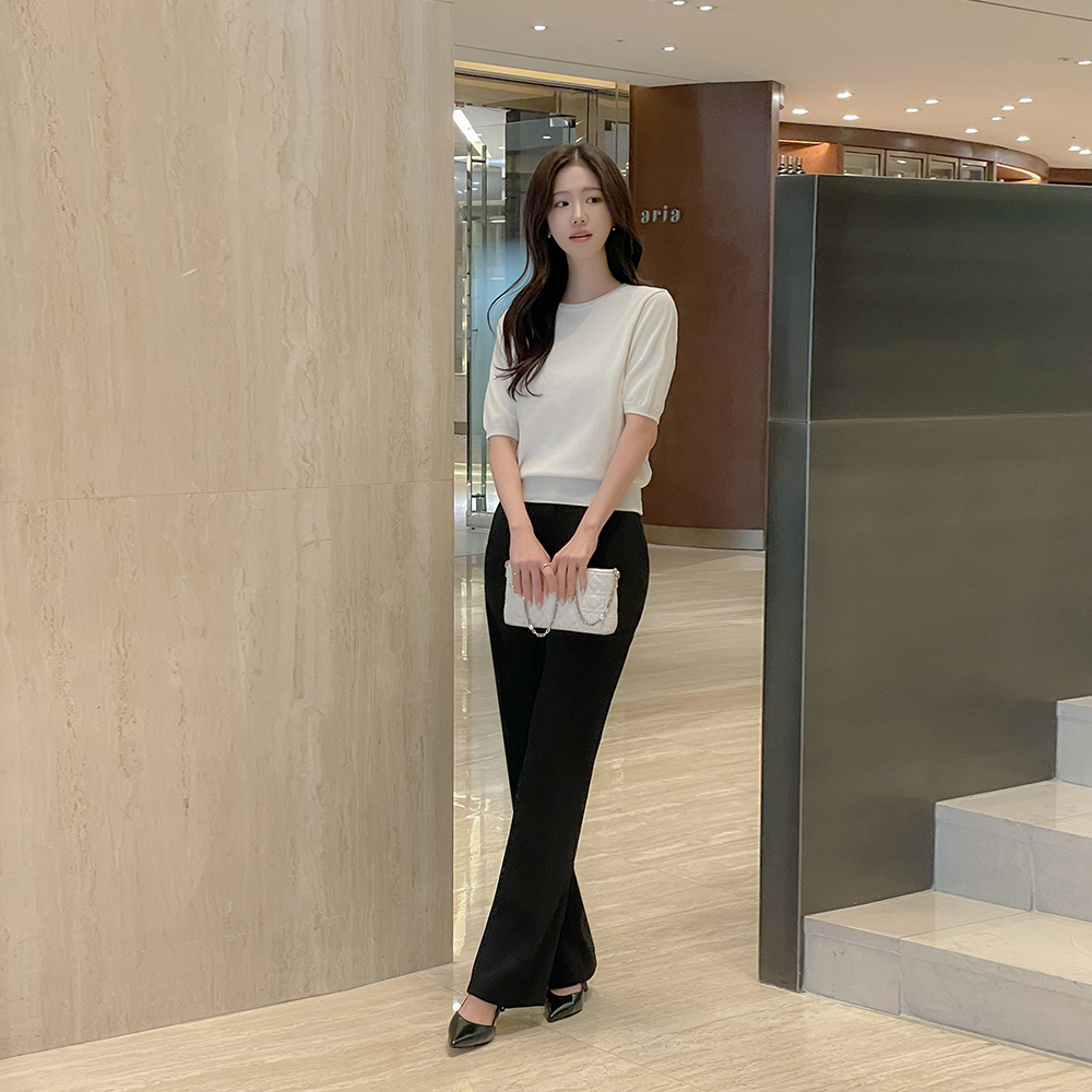 颜色 点缀 圆领 短袖 针织衫