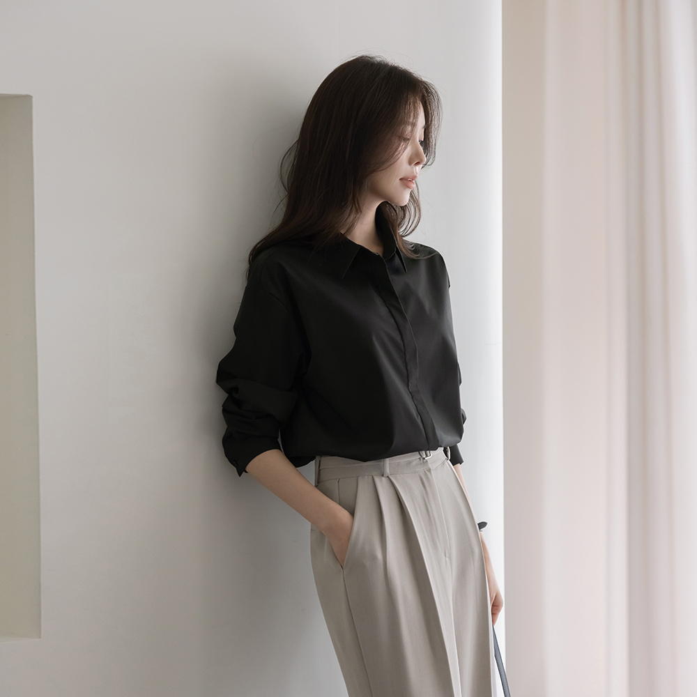 [O:neul] 抗皱 柔丝 弹力 日常 颜色 衬衫