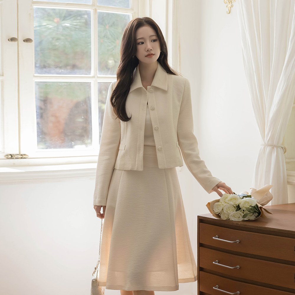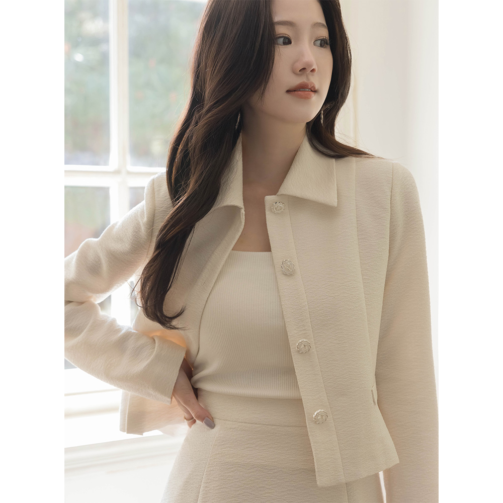로아 翻领 粗呢 Set-up 夹克(+围巾)