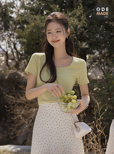 [O:neul] 柔丝 莫代尔 苗条 方领 短袖 T恤衫