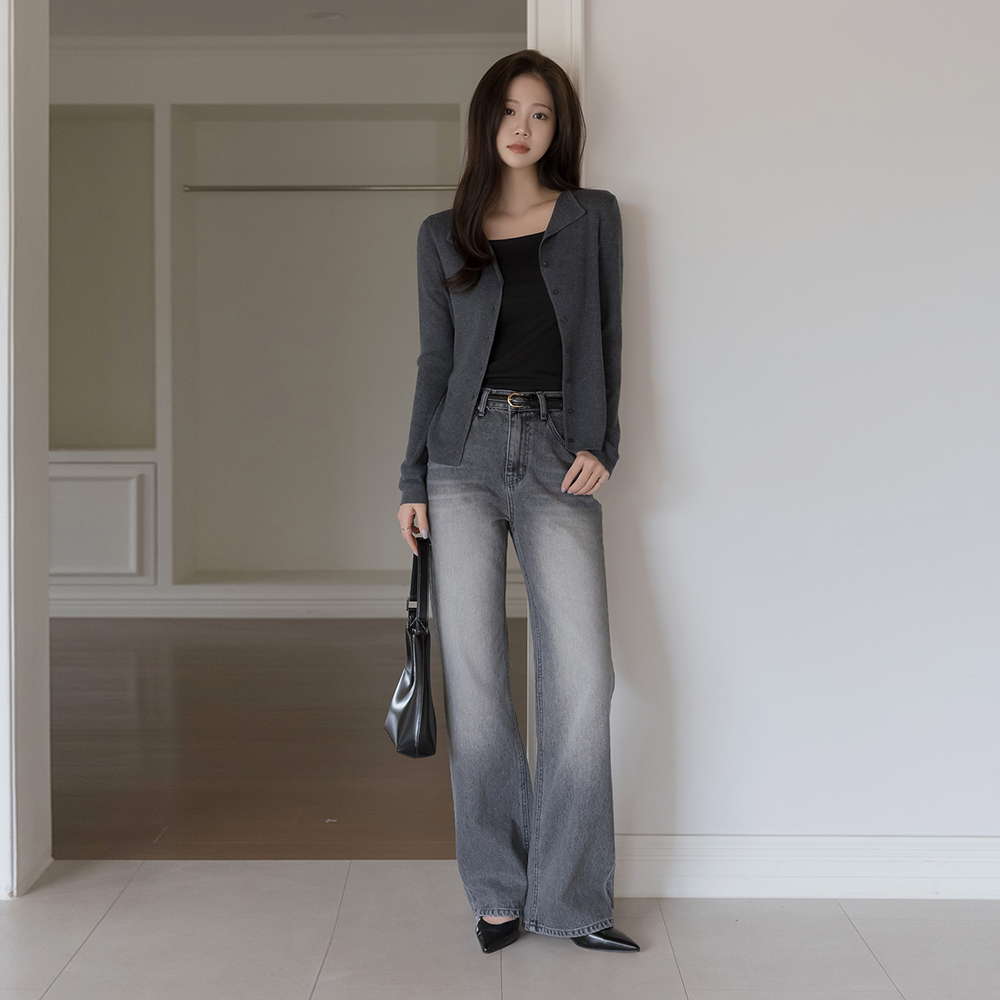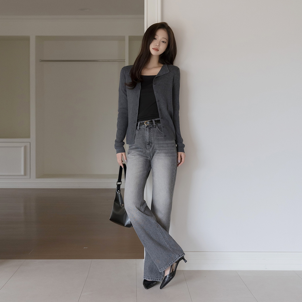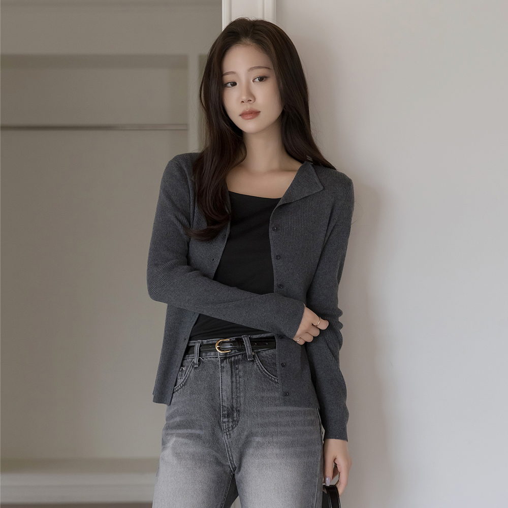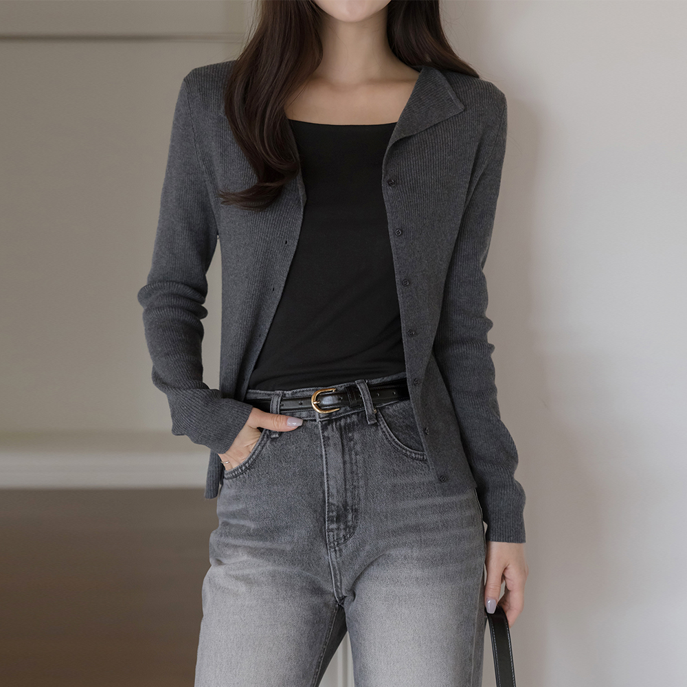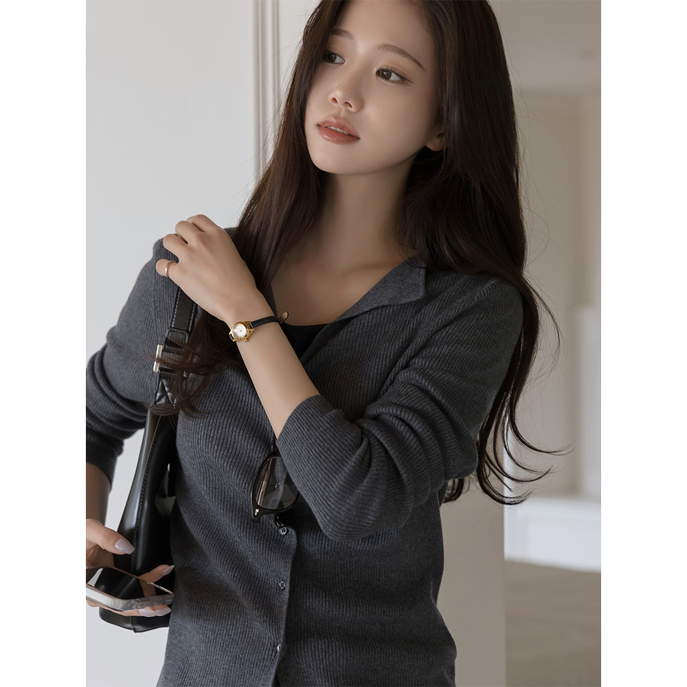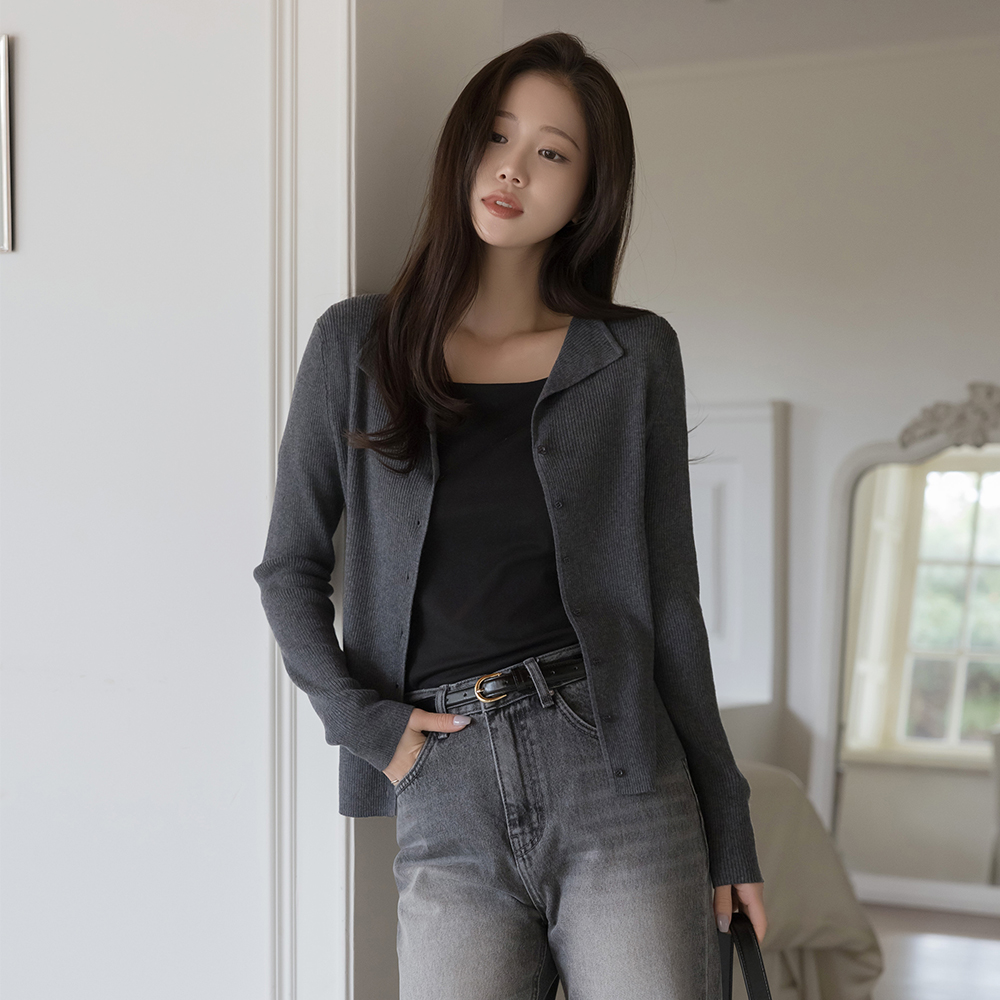 敞开式领口 柔软的 条绒 针织衫 开衫