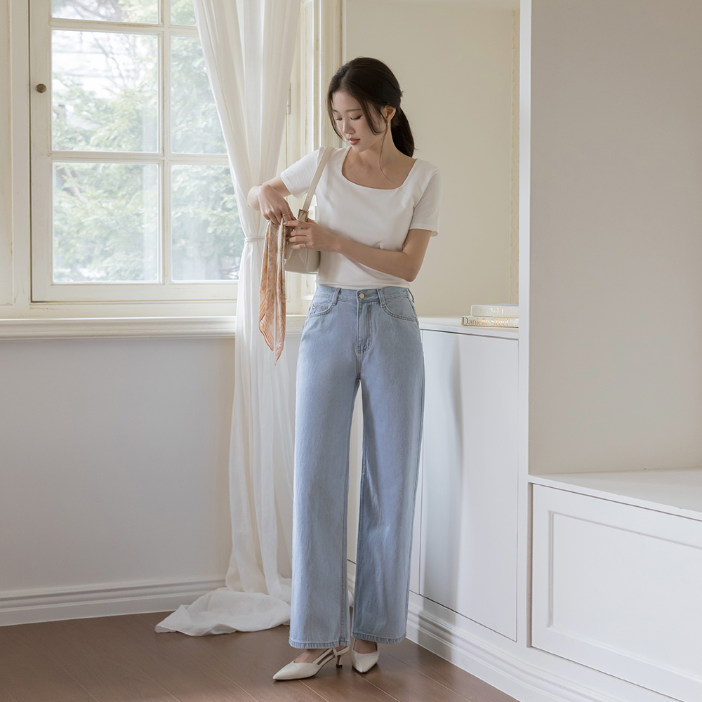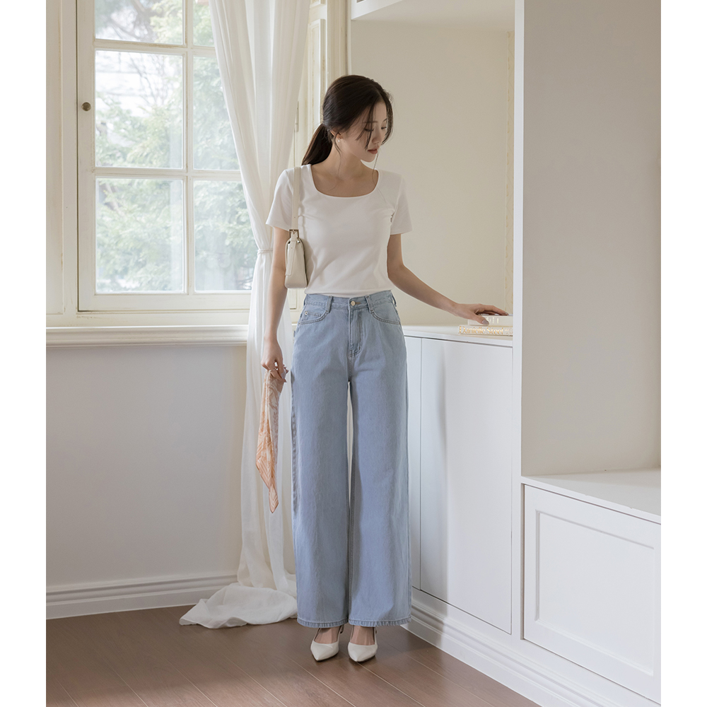 [O:neul] 柔丝 莫代尔 苗条 方领 短袖 T恤衫