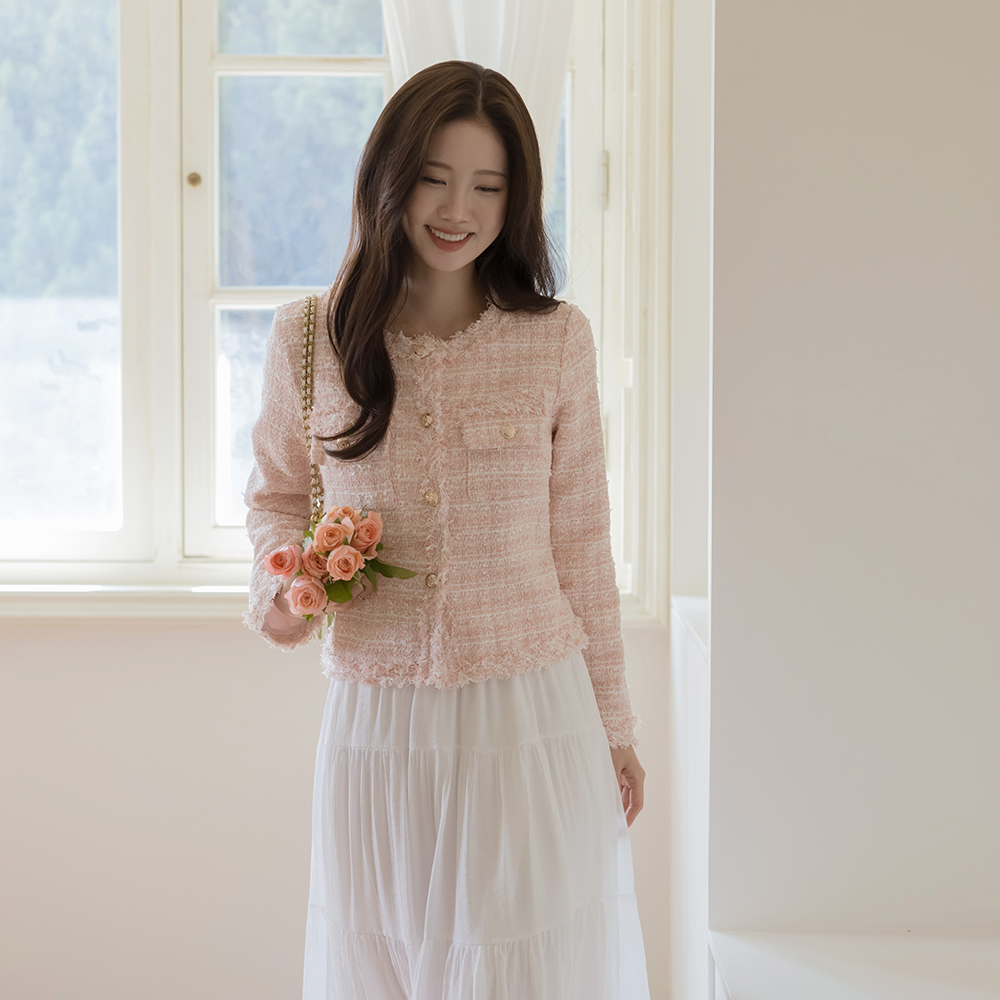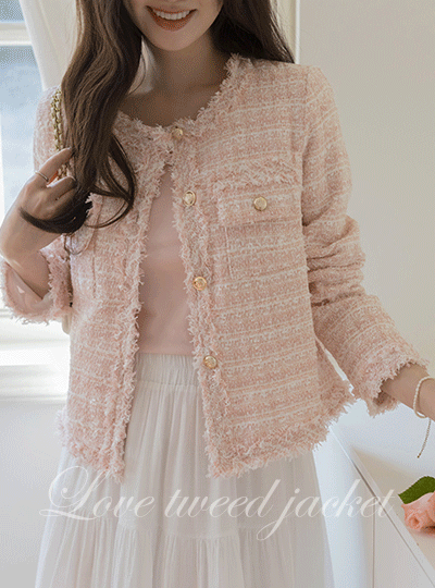 LOVE 圆领 穗饰 粗呢 夹克