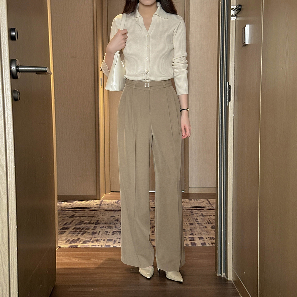 软绵绵软的 细褶 宽绰 宽松长裤(+腰带)