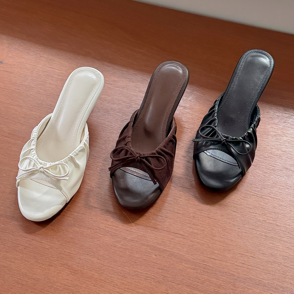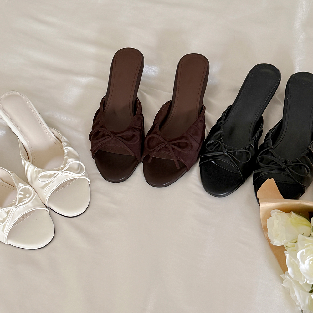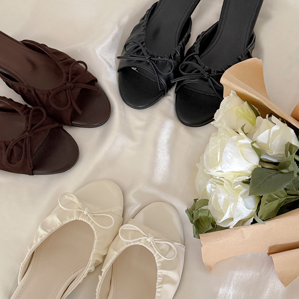 蝴蝶结 褶皱 오픈토 高跟鞋
