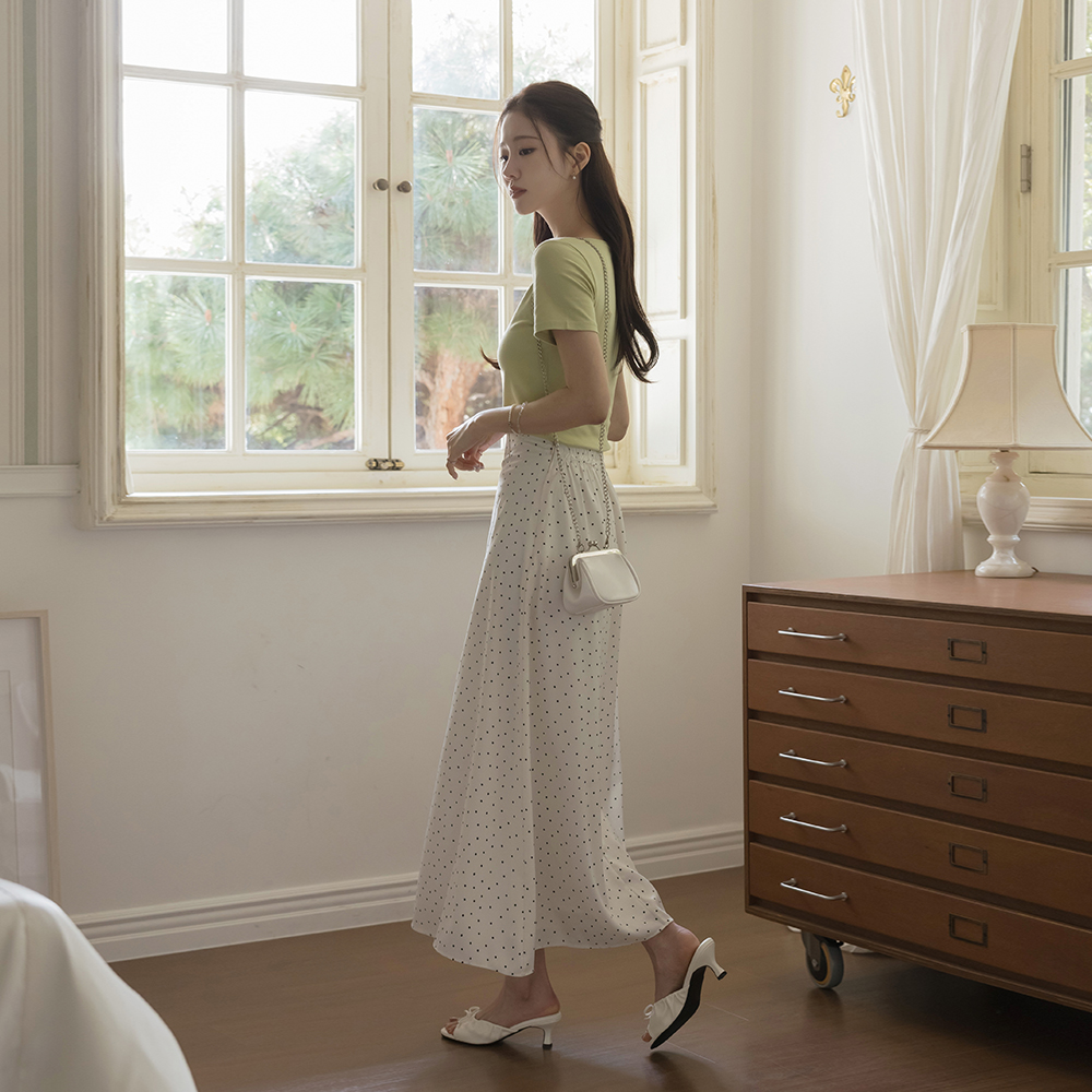 [O:neul] 柔丝 莫代尔 苗条 方领 短袖 T恤衫