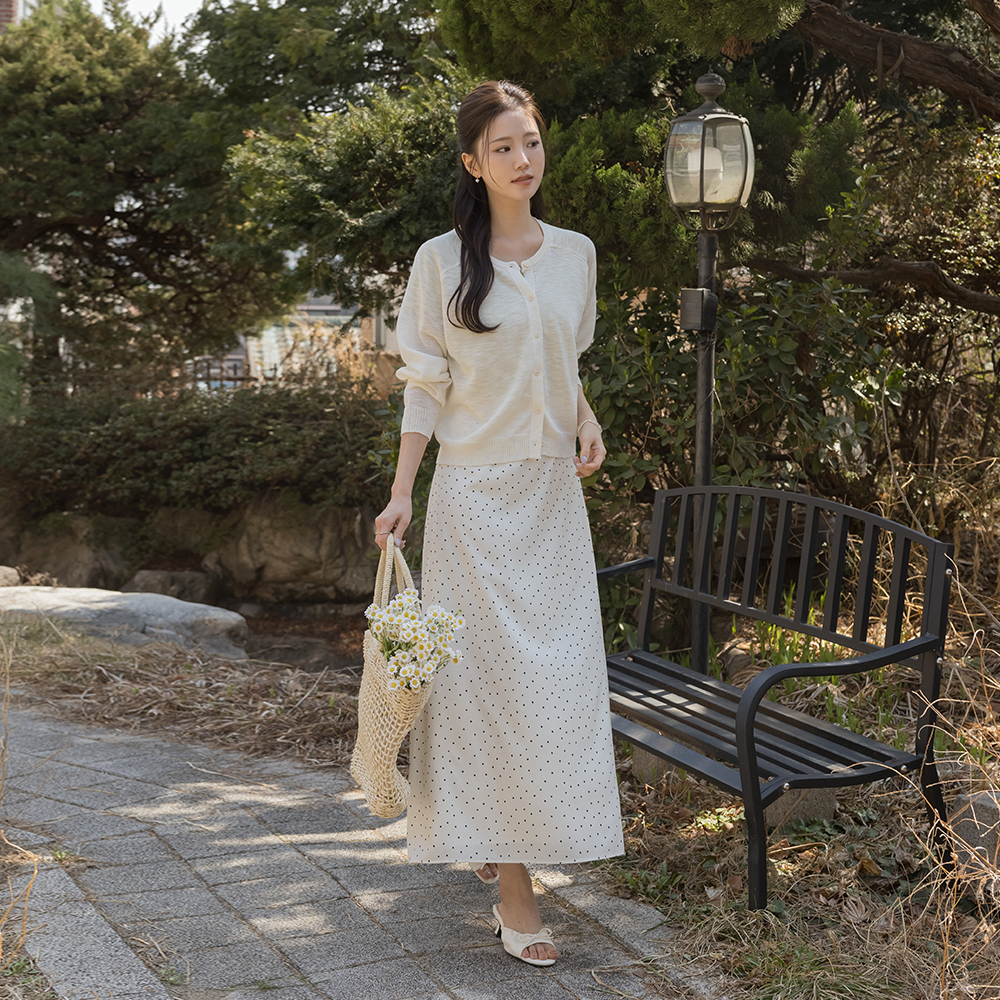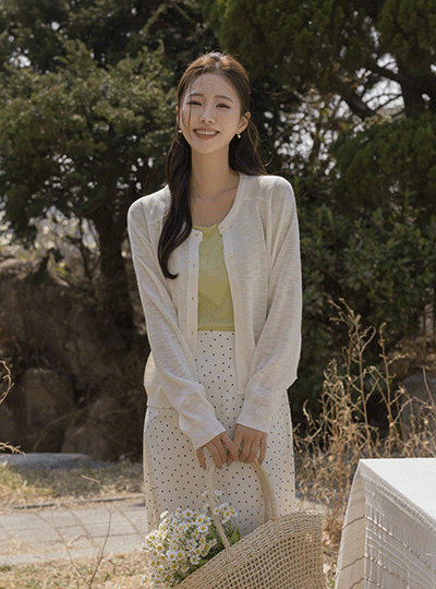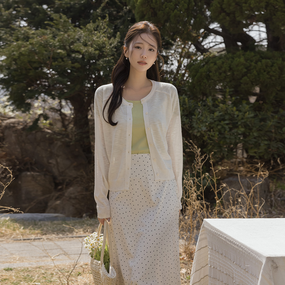 圆领 螺钿 点缀 亚麻 开衫