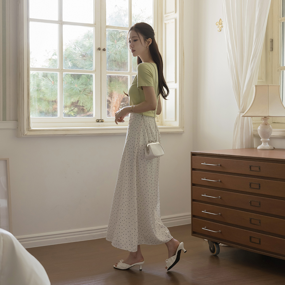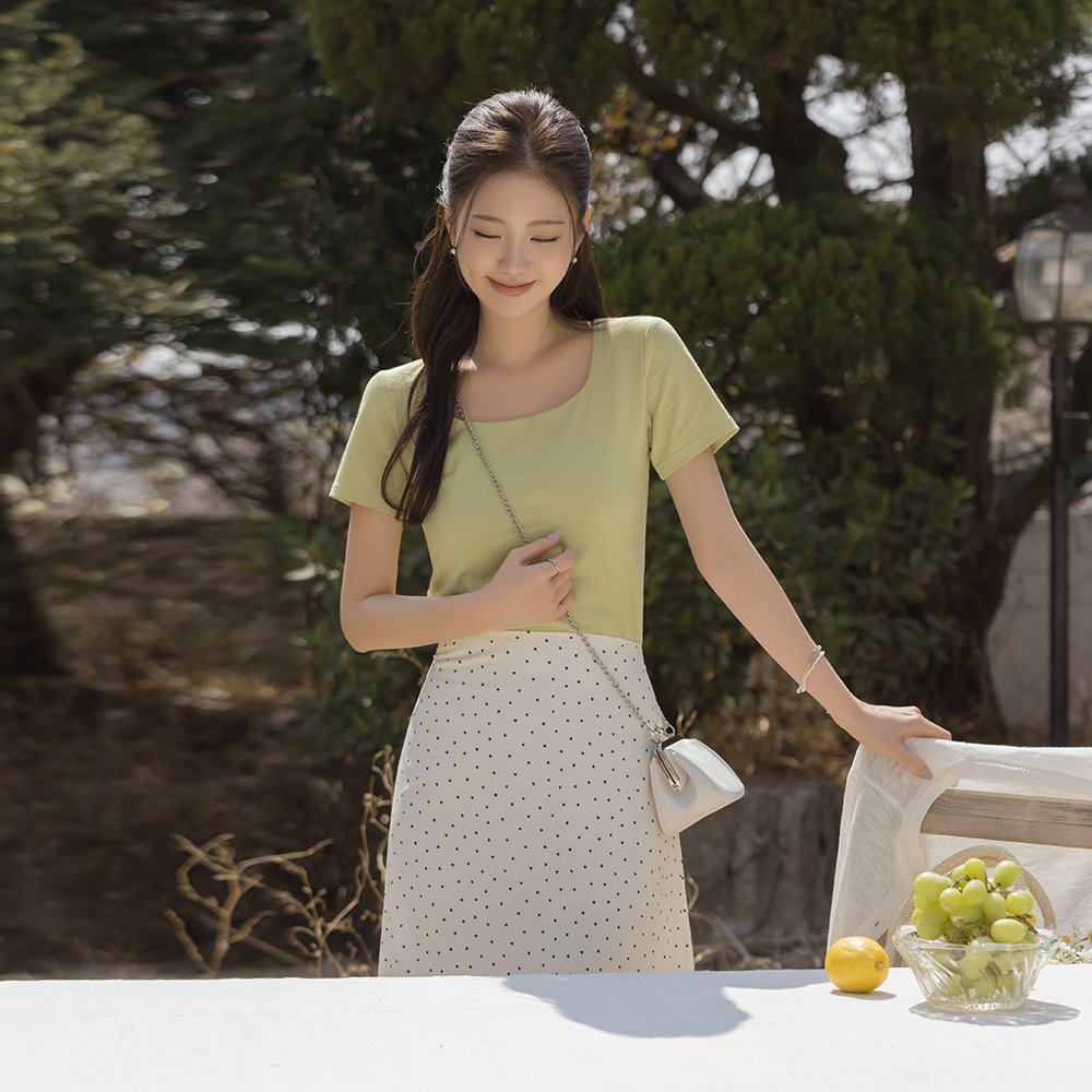 [O:neul] 柔丝 莫代尔 苗条 方领 短袖 T恤衫