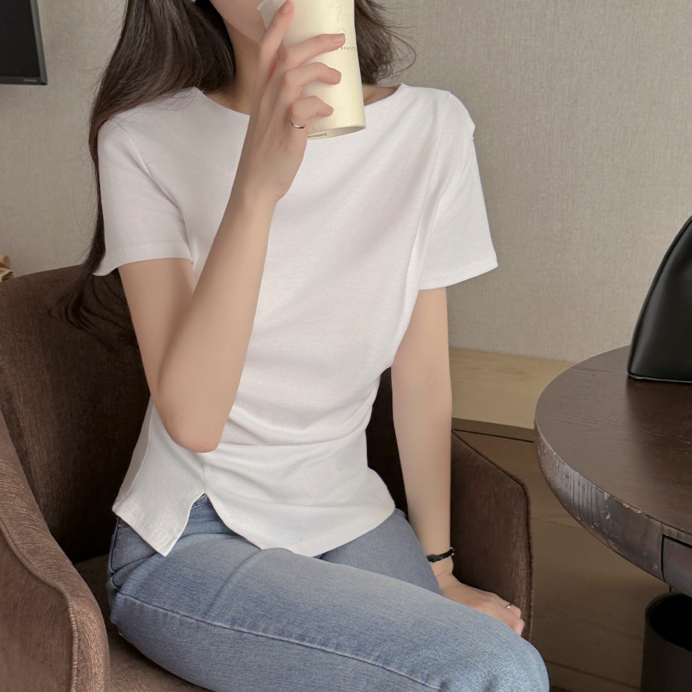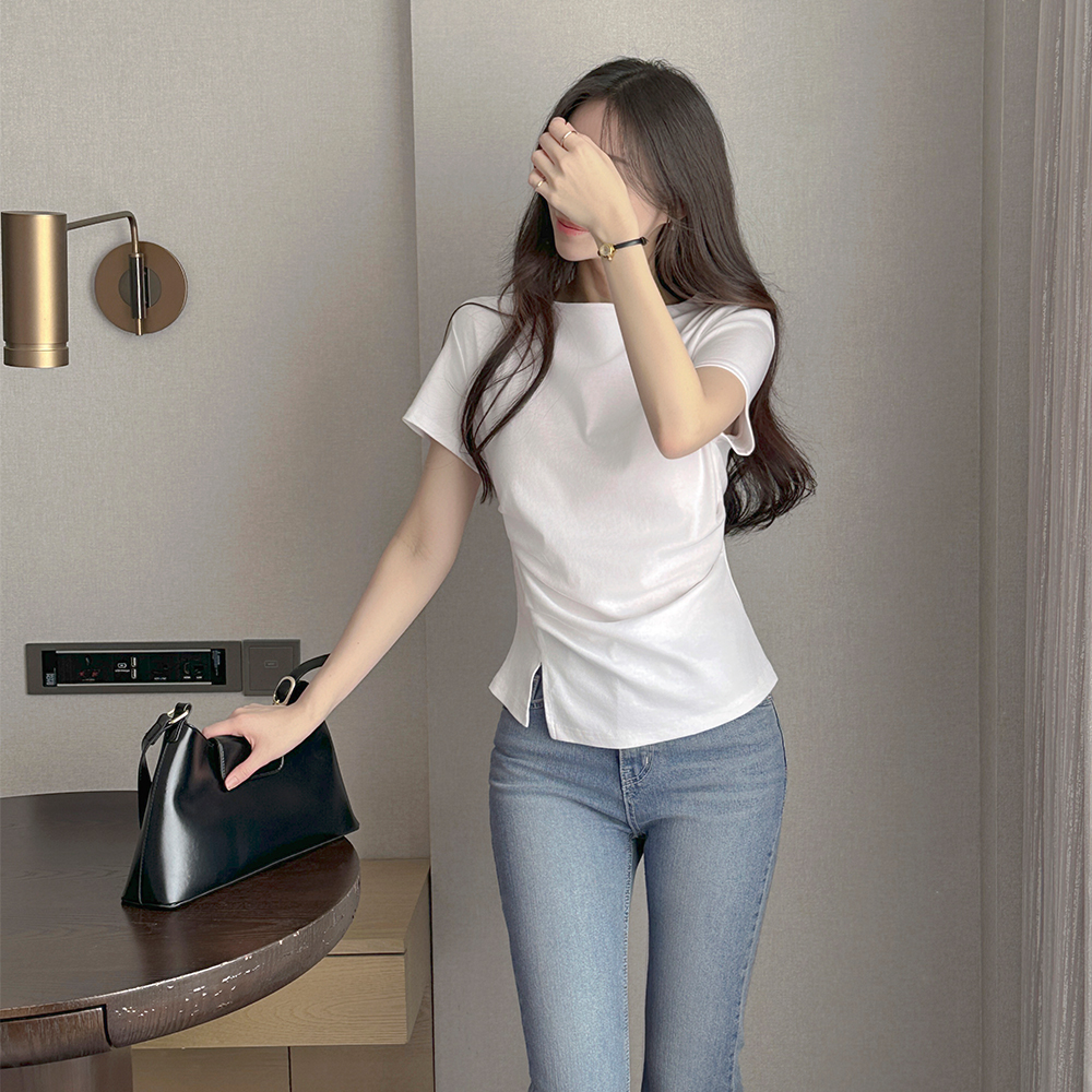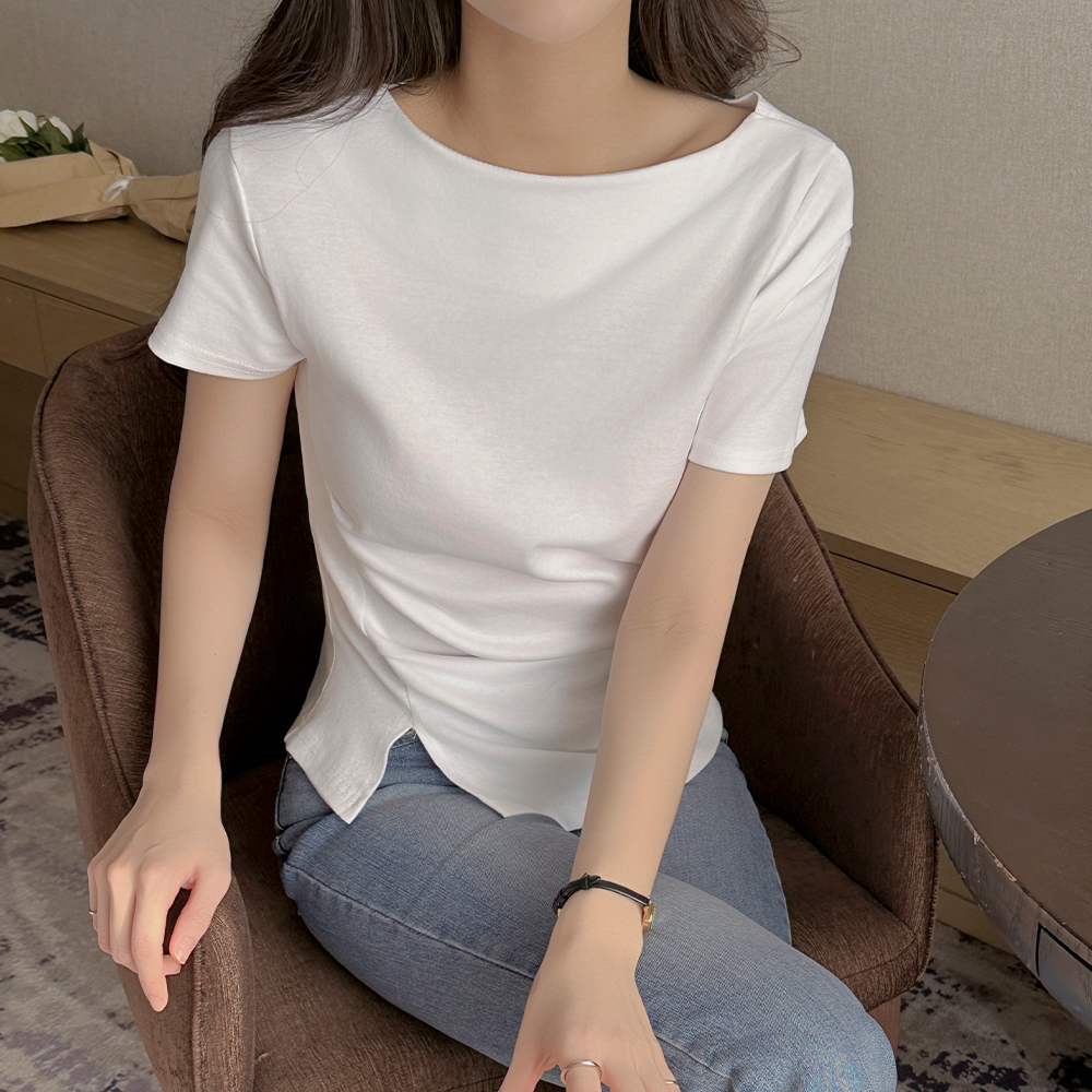 船形领 褶皱 漂亮的版型 短袖 T恤衫