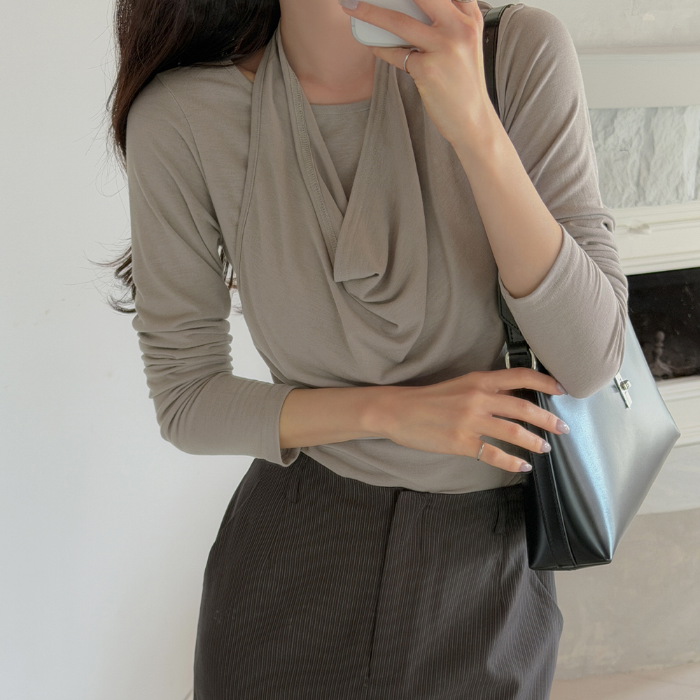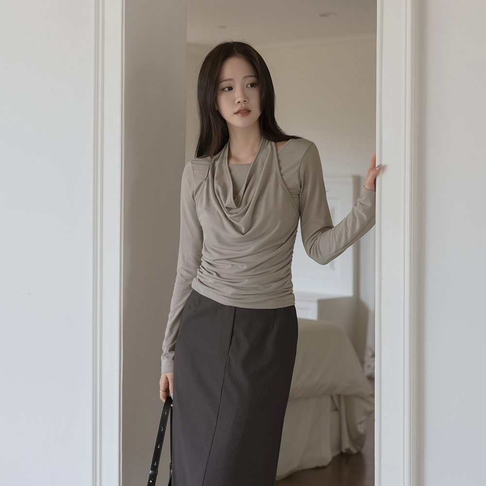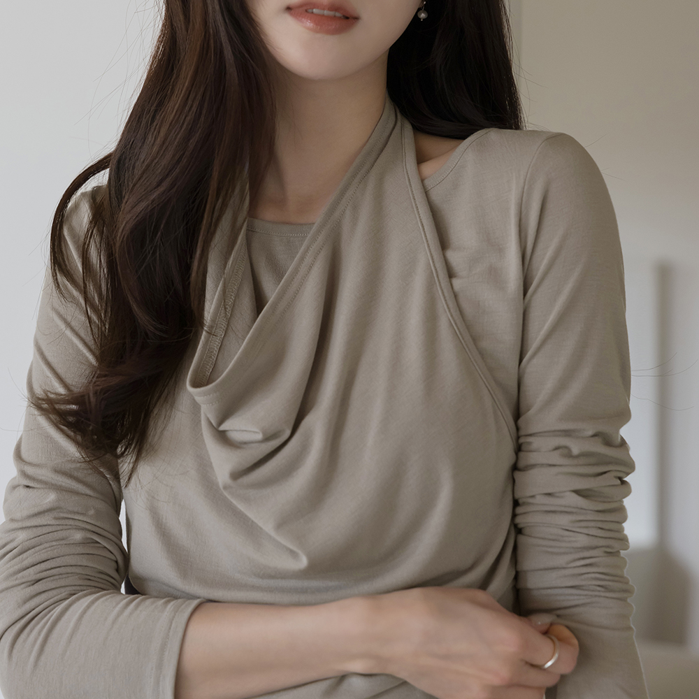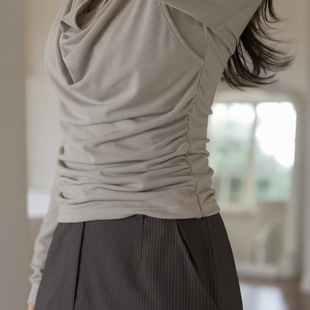 袒肩露背 分层 褶皱 弹力 T恤衫