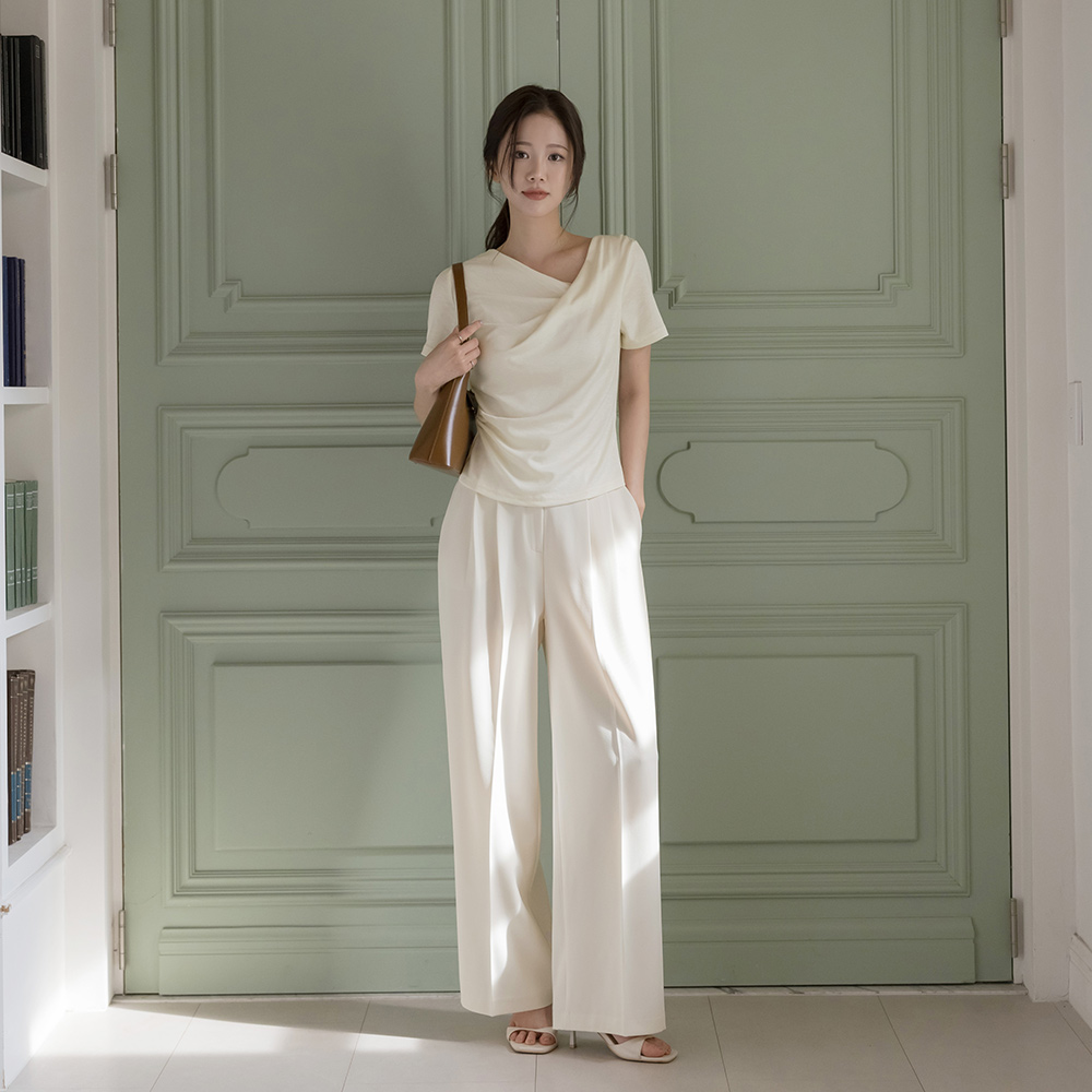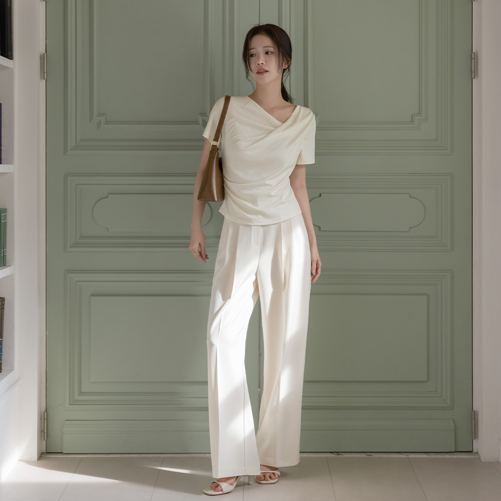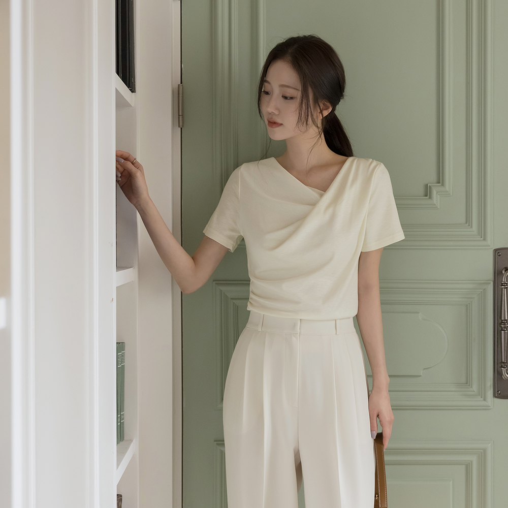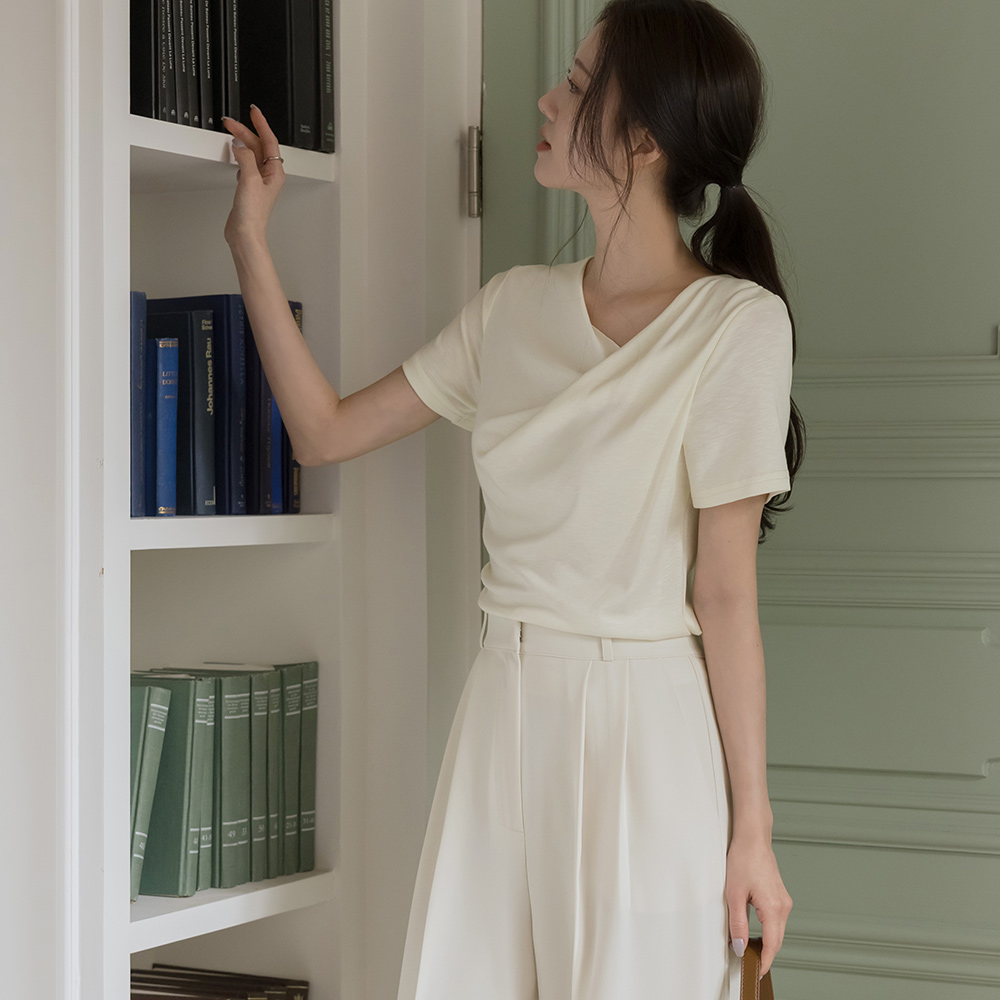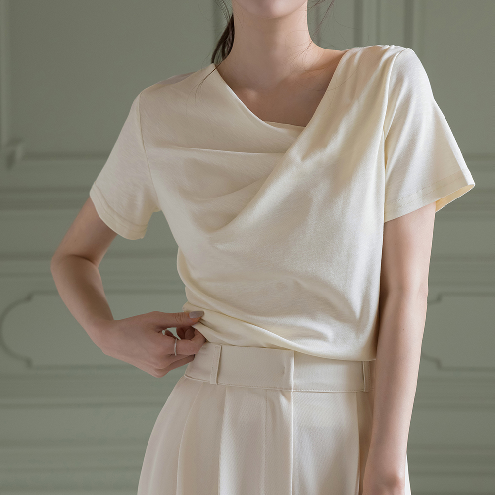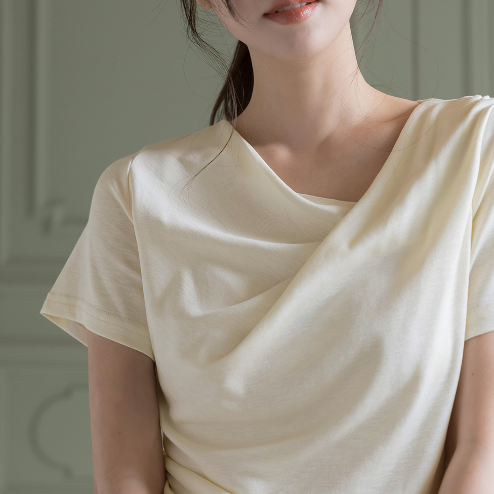 莫代尔 披盖 褶皱 短袖 T恤衫