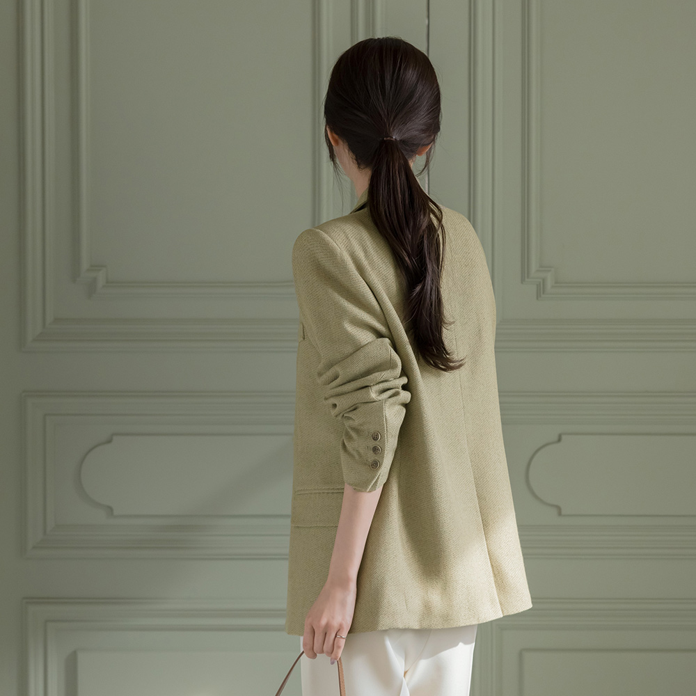 高品质 맞춤핏 翻领 亚麻 夹克