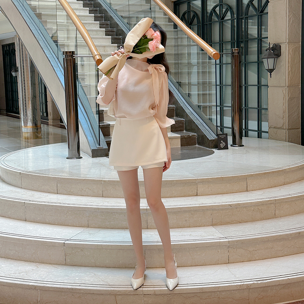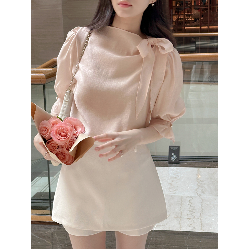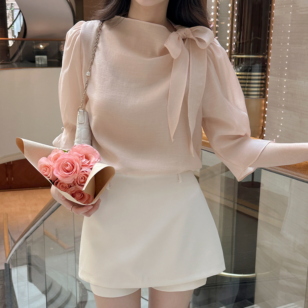 로맨스 蝴蝶结领口 7分 天丝 罩衫