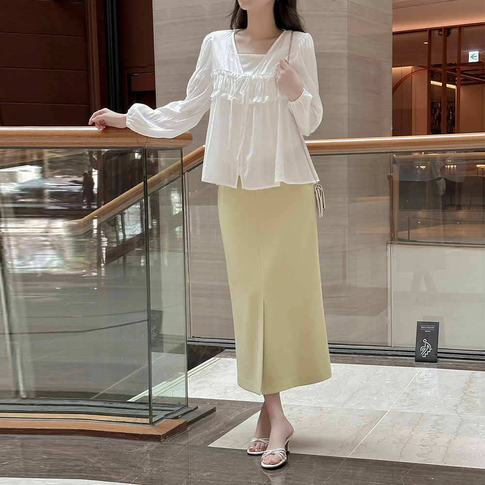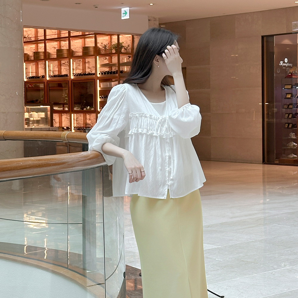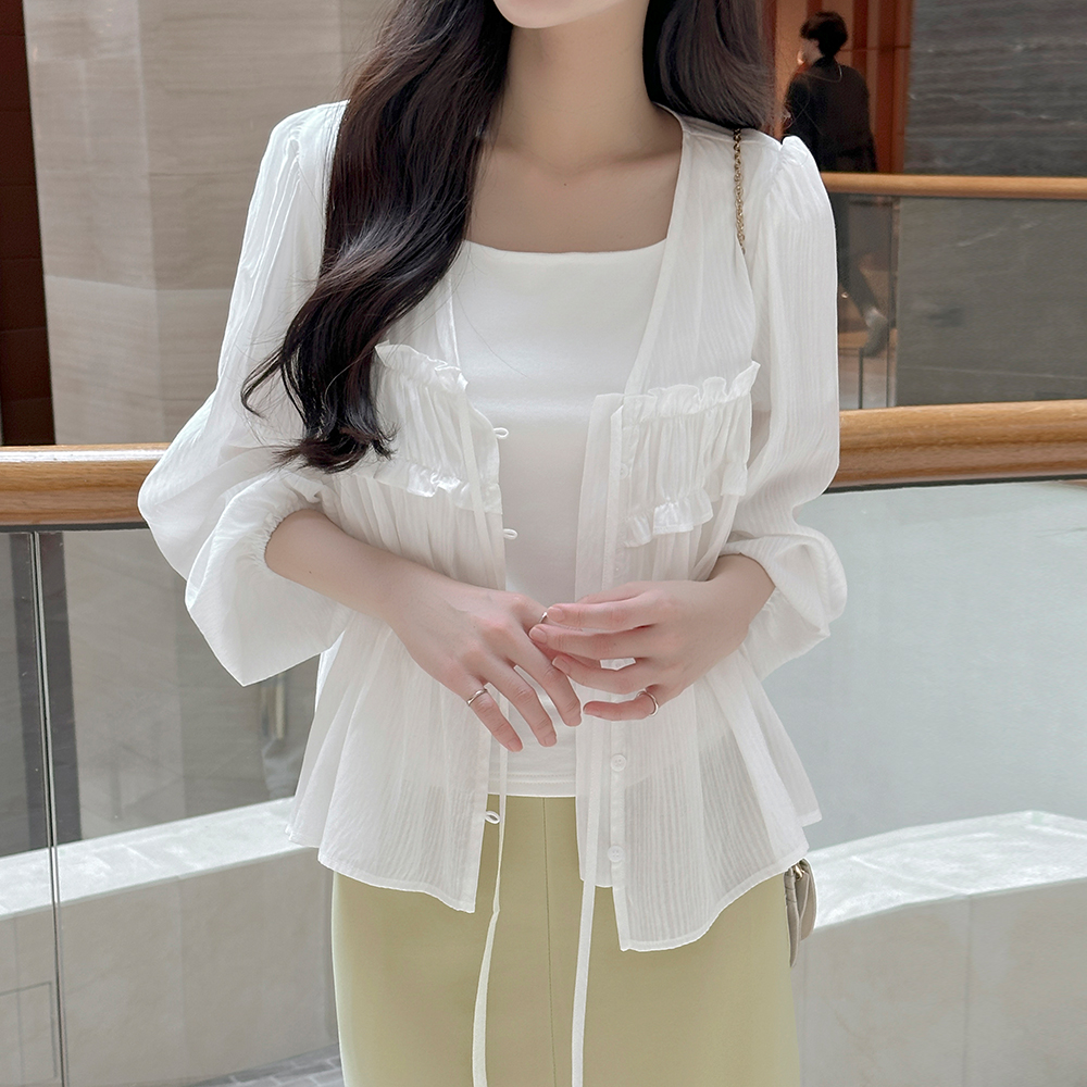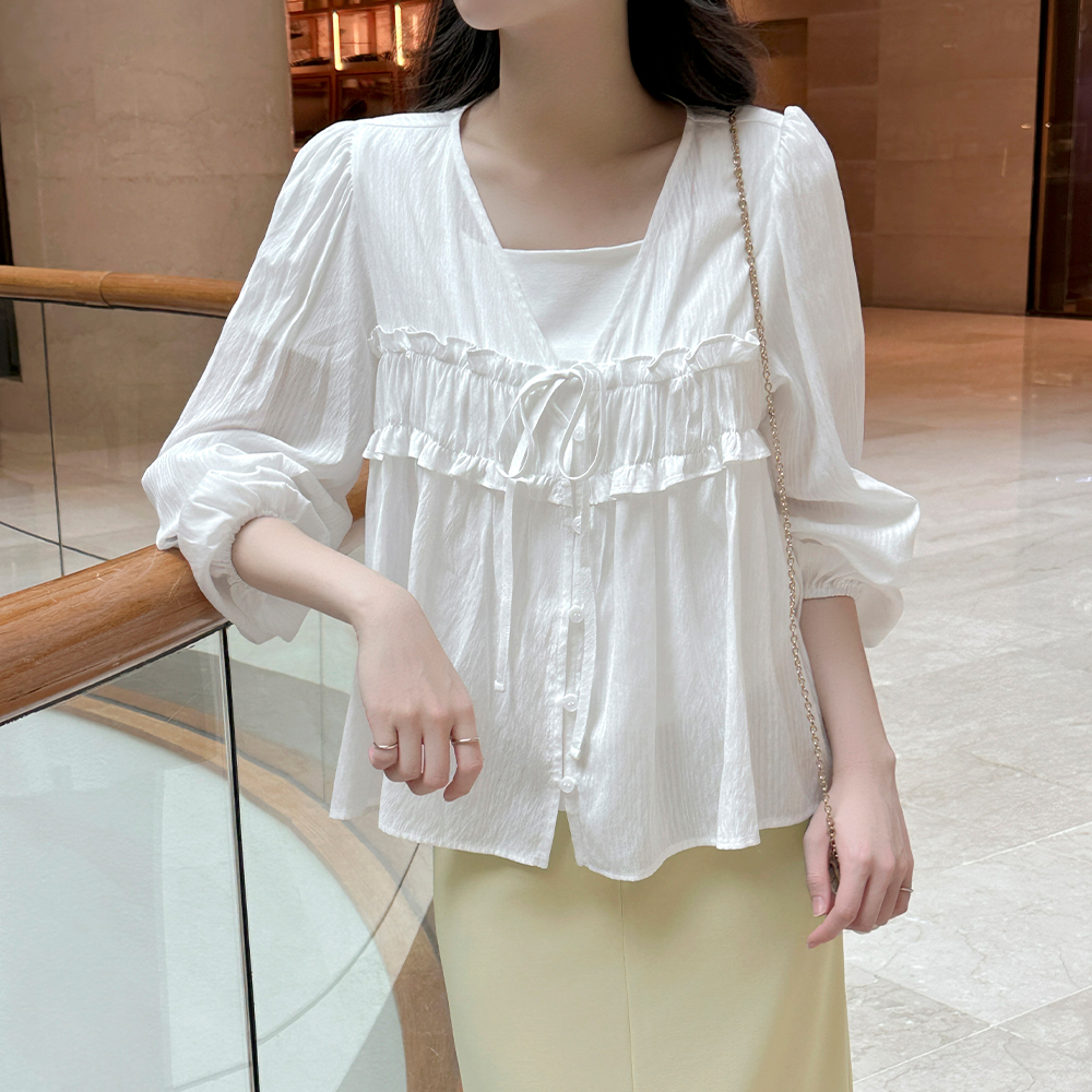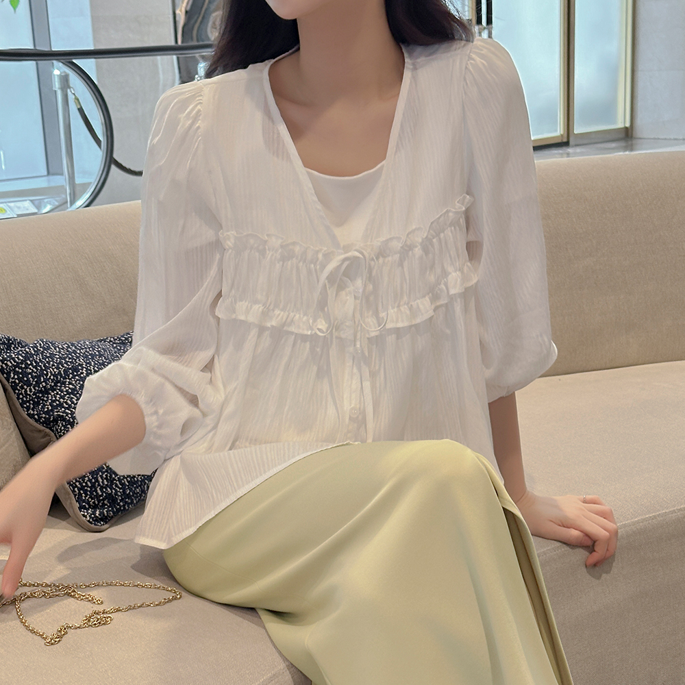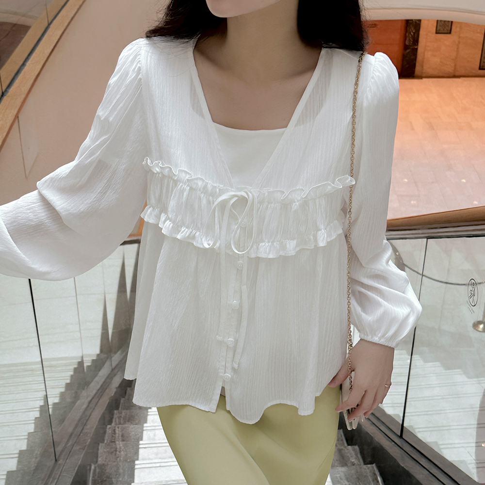 领带 V字领 荷叶 罩衫