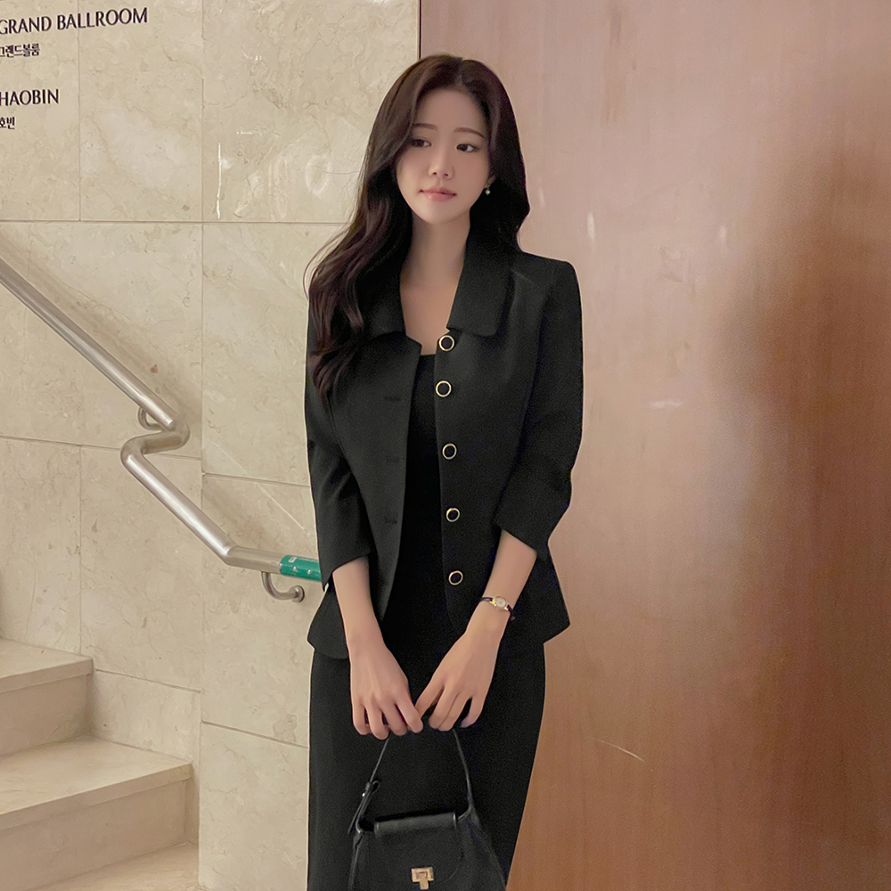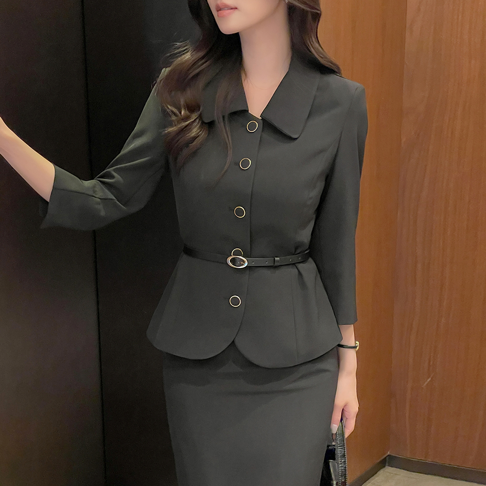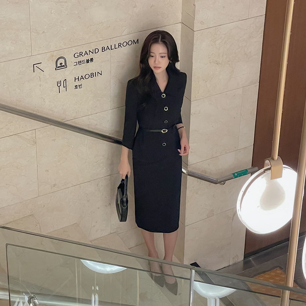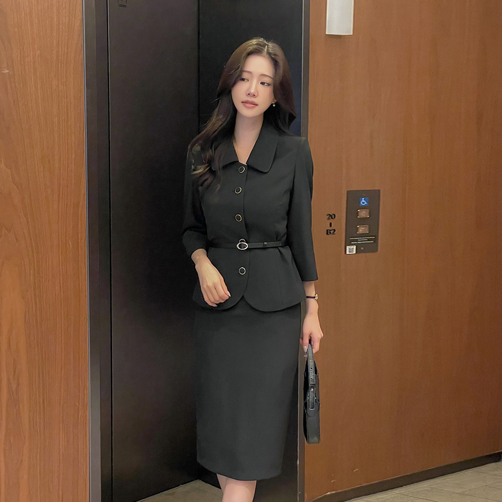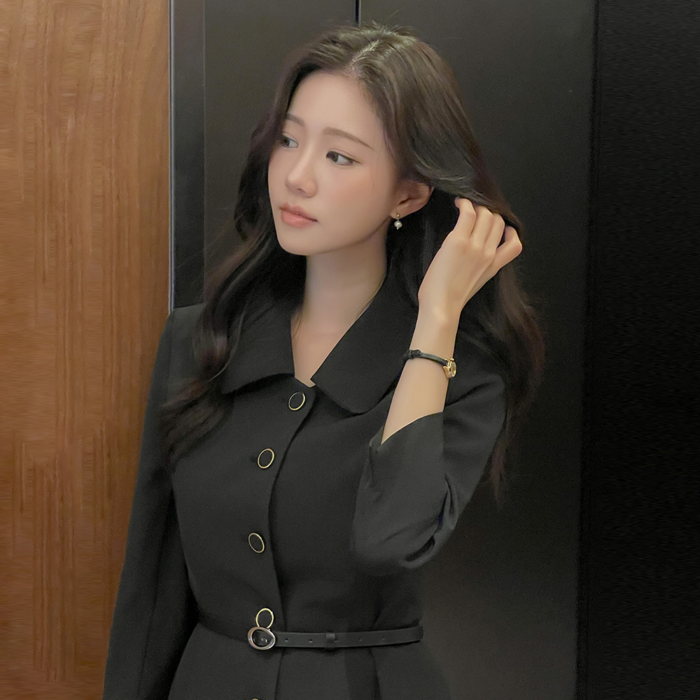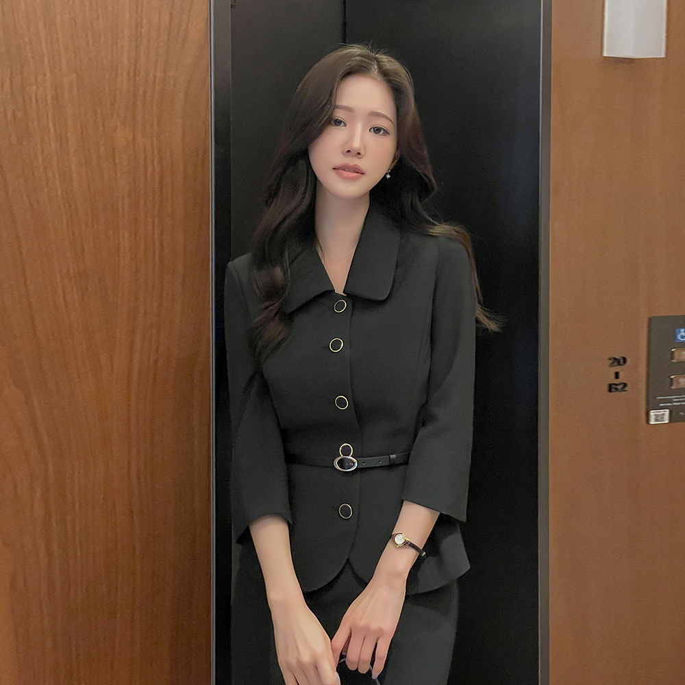 柔丝 弹力 领子 탈부착 Set-up 夹克(+腰带)