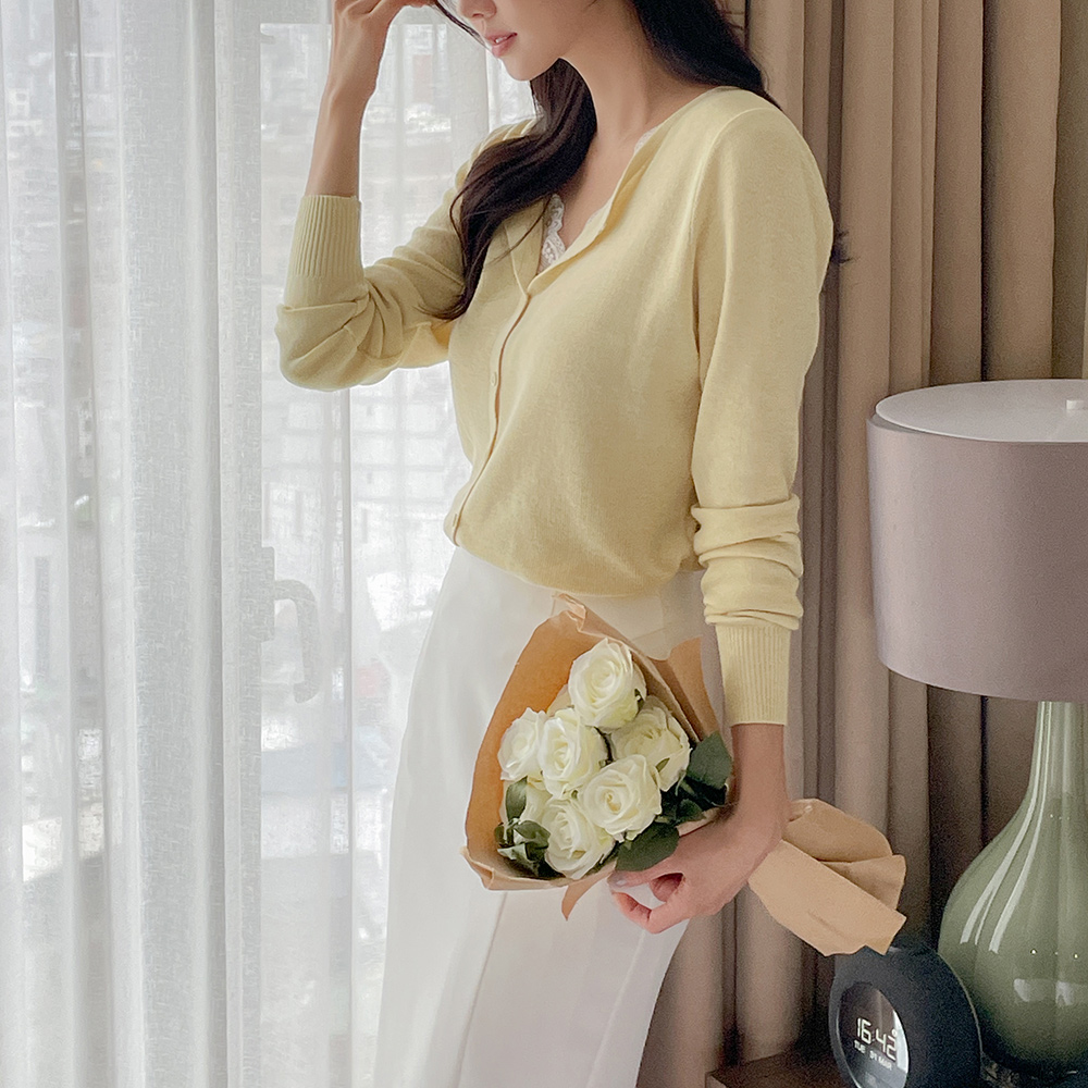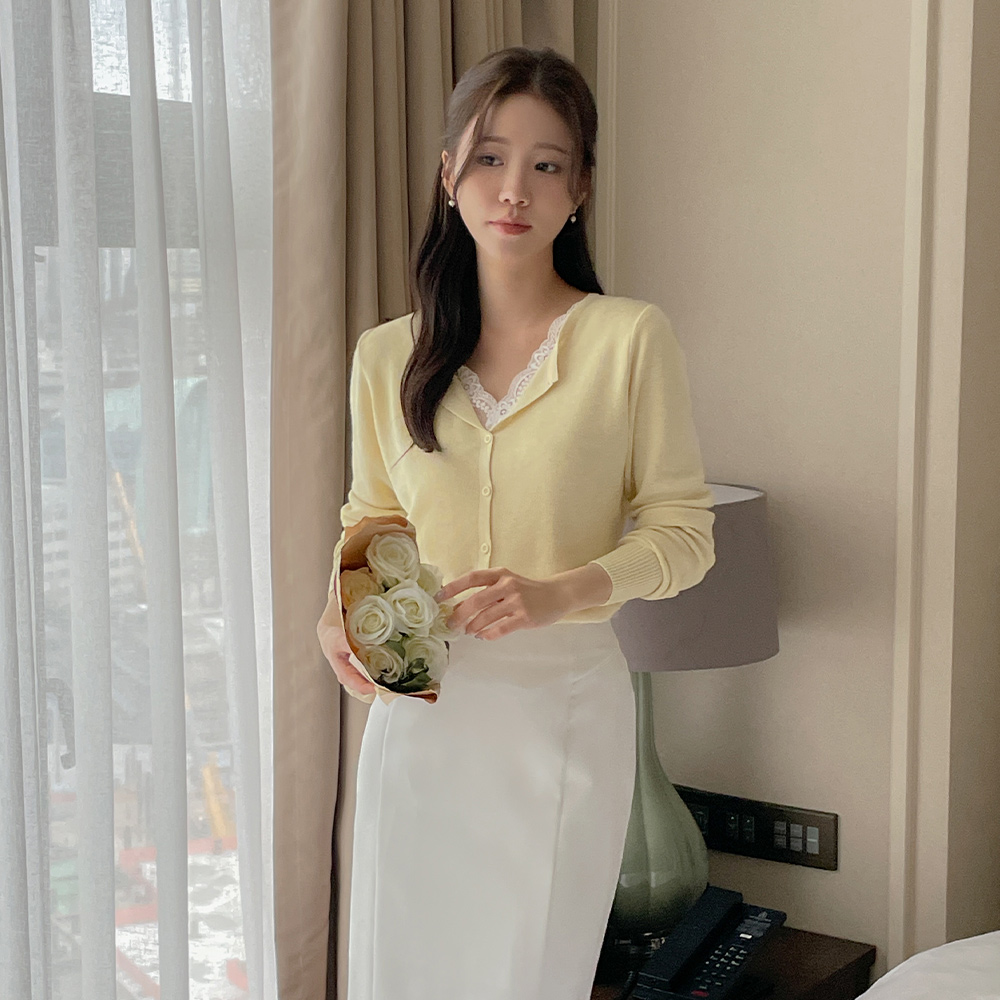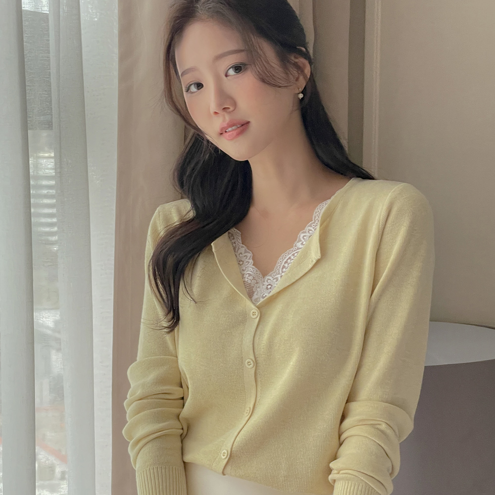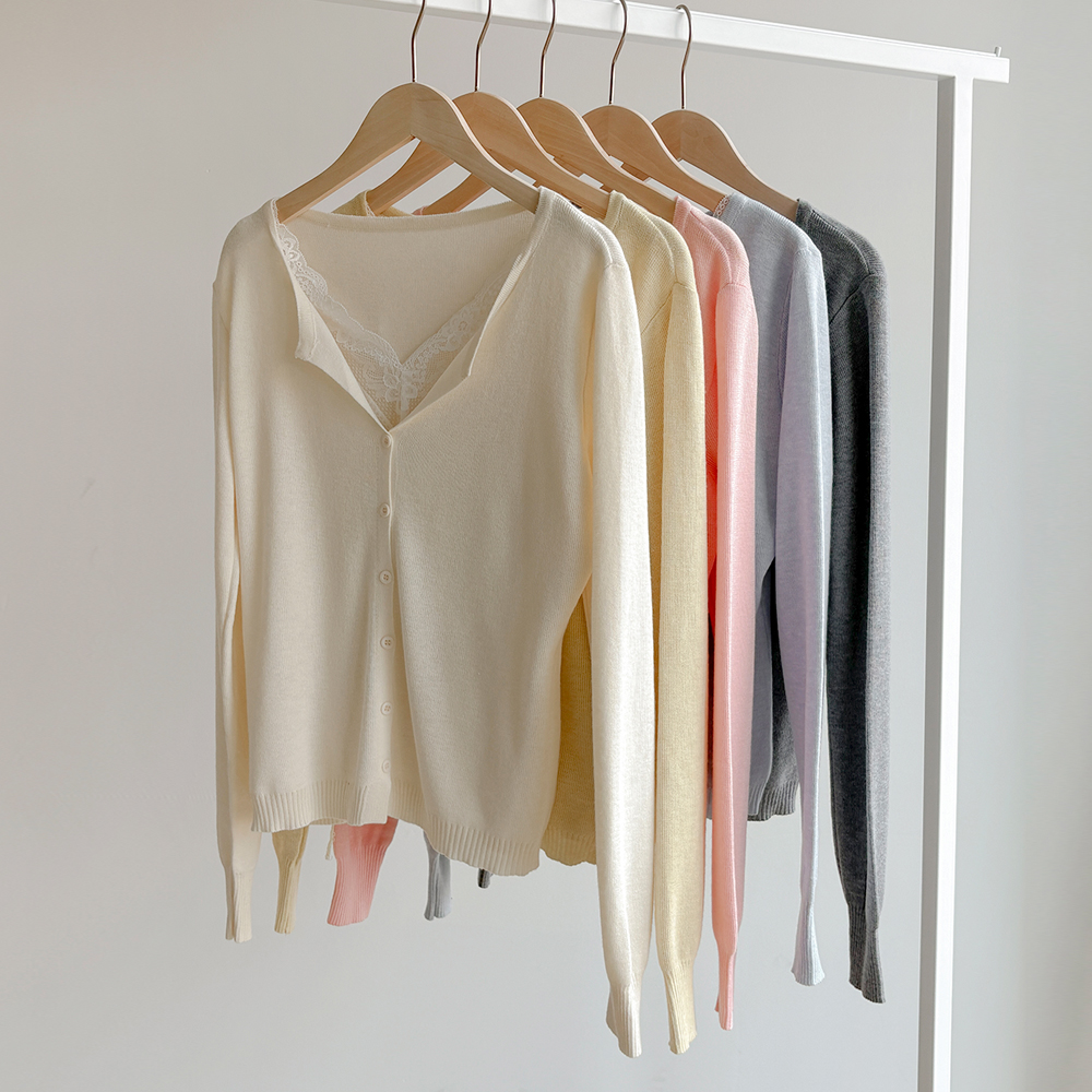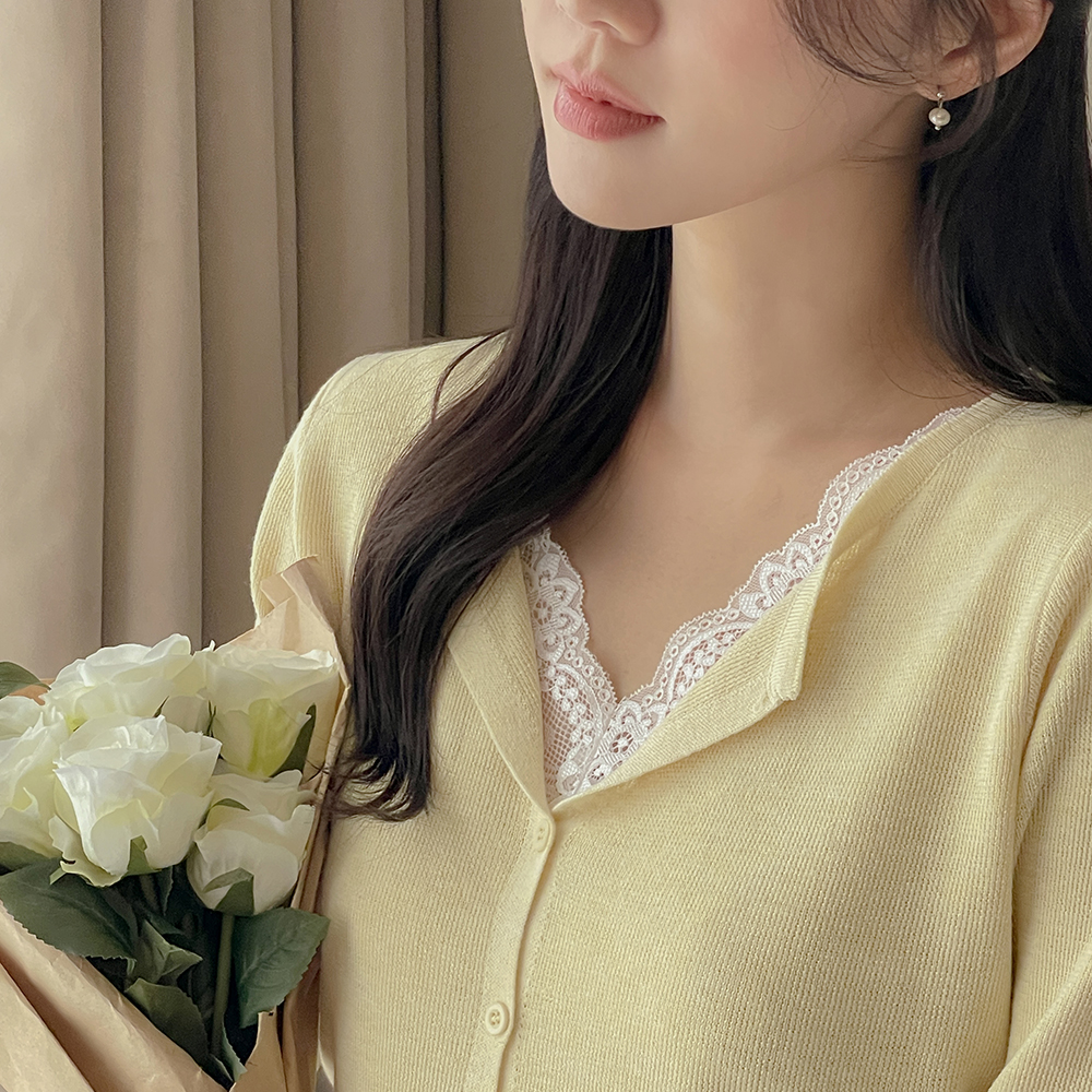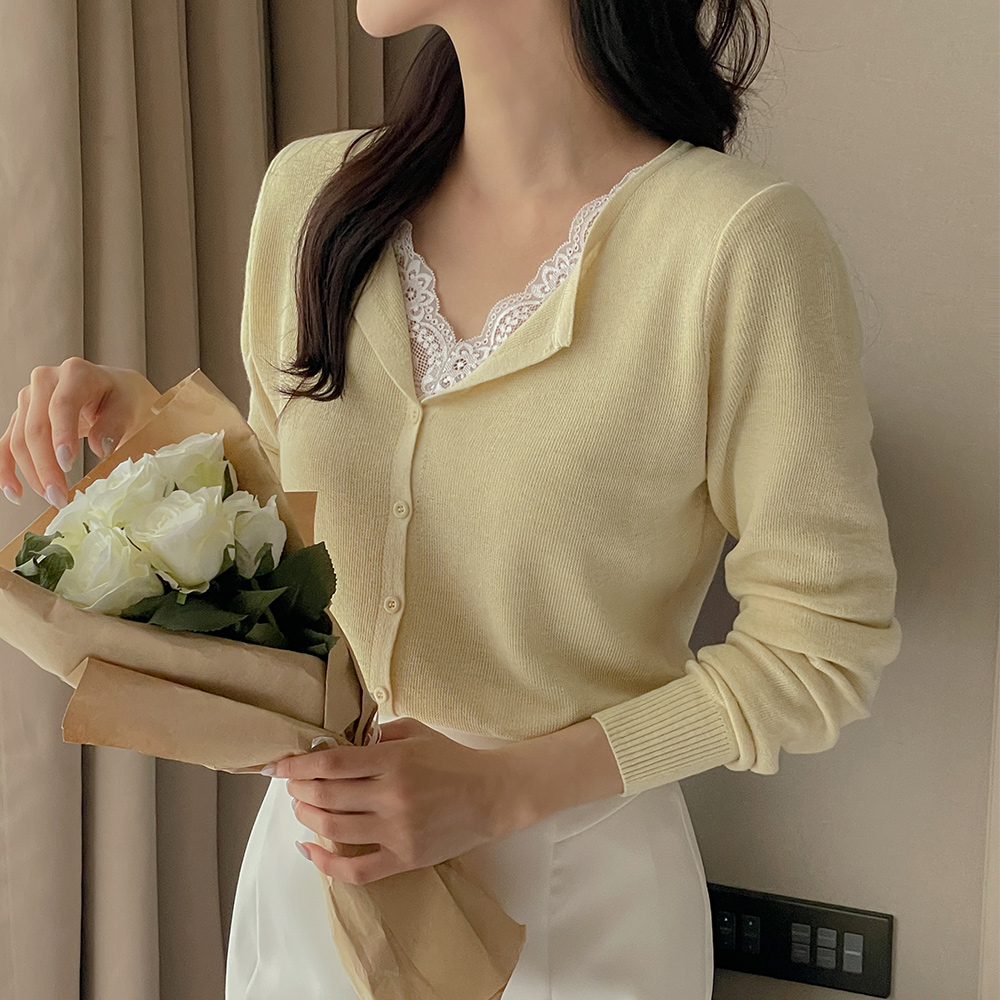 蕾丝 分层 敞开式领口 开衫 针织衫