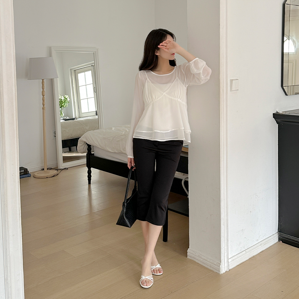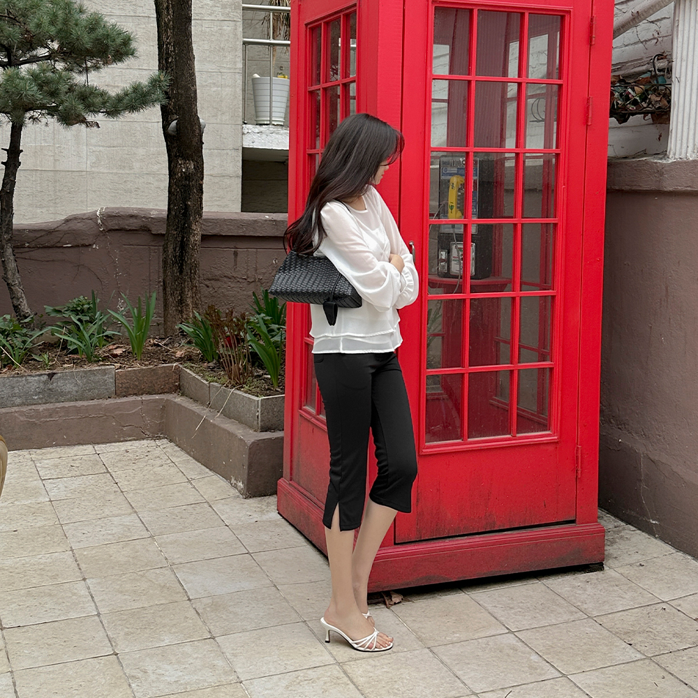 细密 弹力 里面松紧带 카프리 宽松长裤