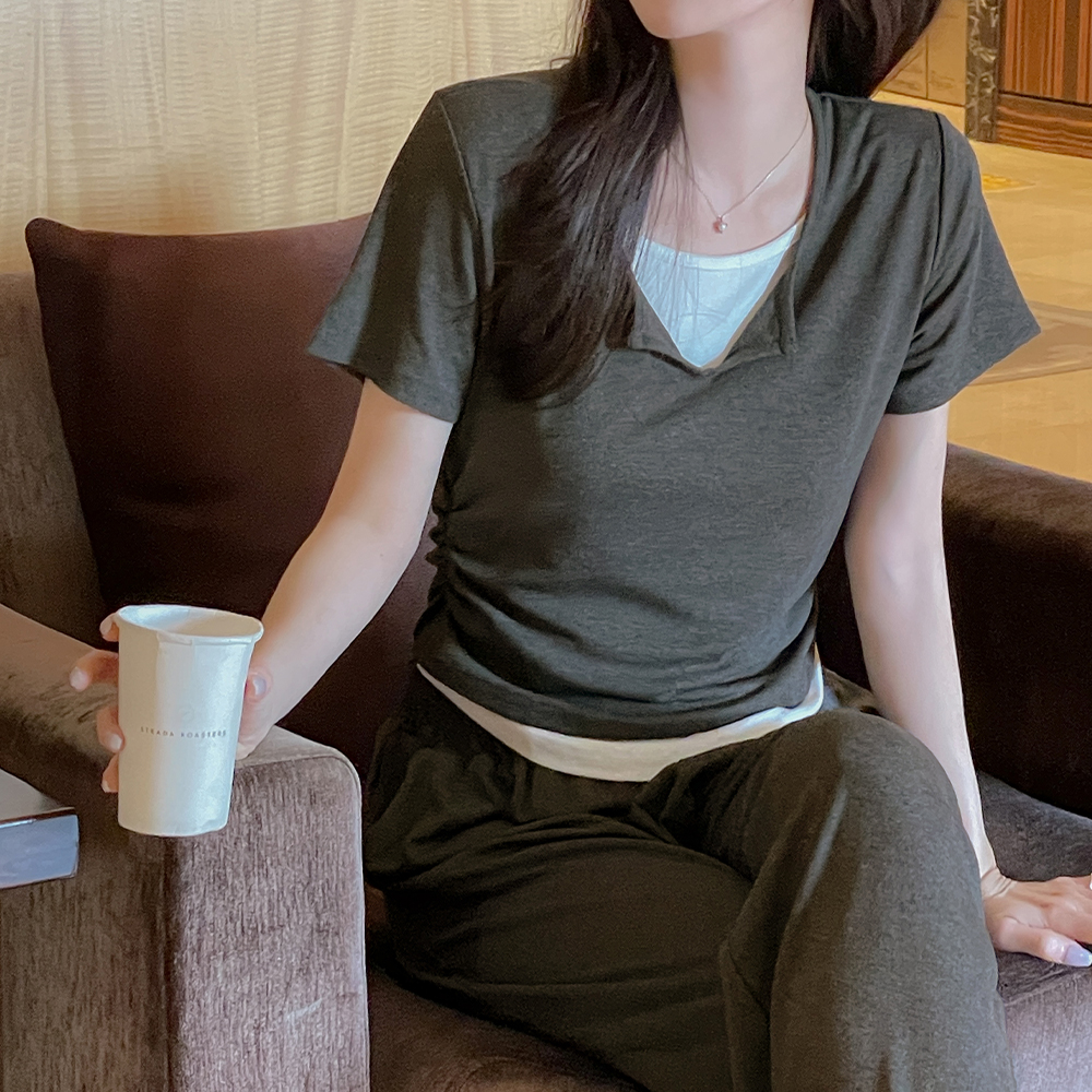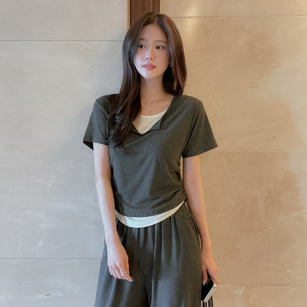 软绵绵软的 分层 短袖 T恤衫&裤子 SET