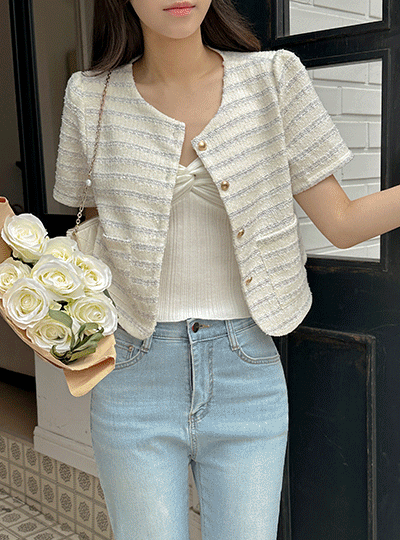 圆领 条纹 쫀득 粗呢 夹克