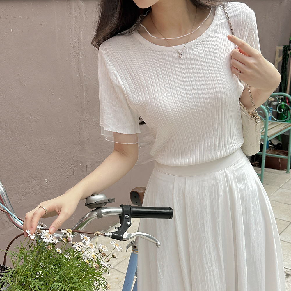 엘프 透视 分层 短袖 针织衫