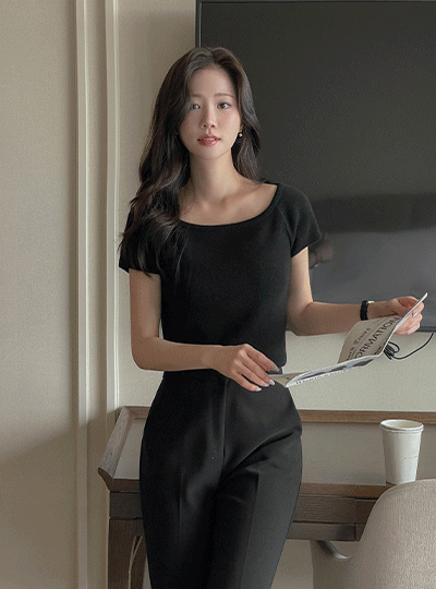[O:neul] 柔丝 莫代尔 苗条 方领 短袖 T恤衫