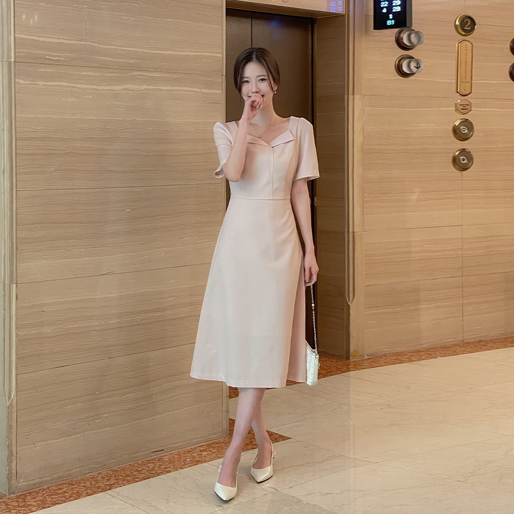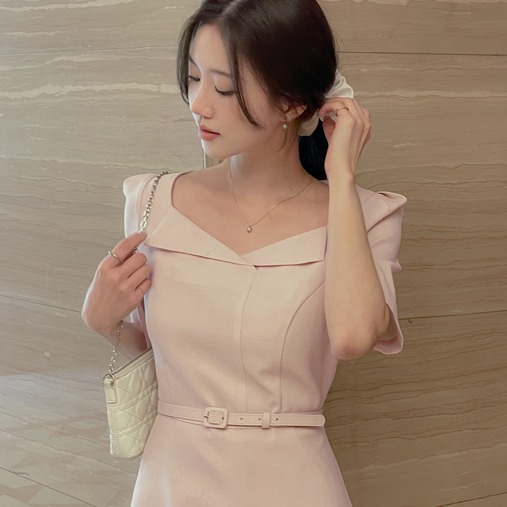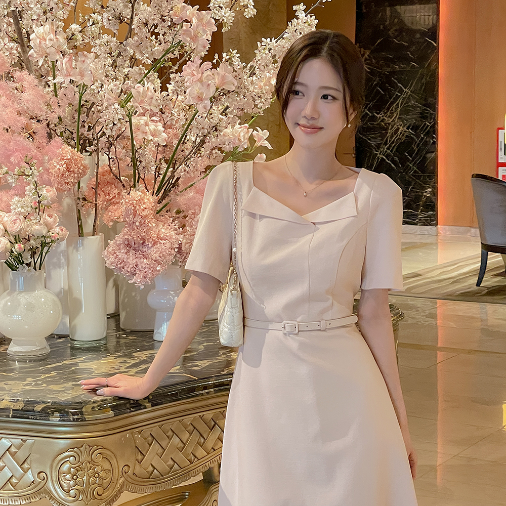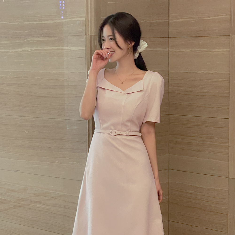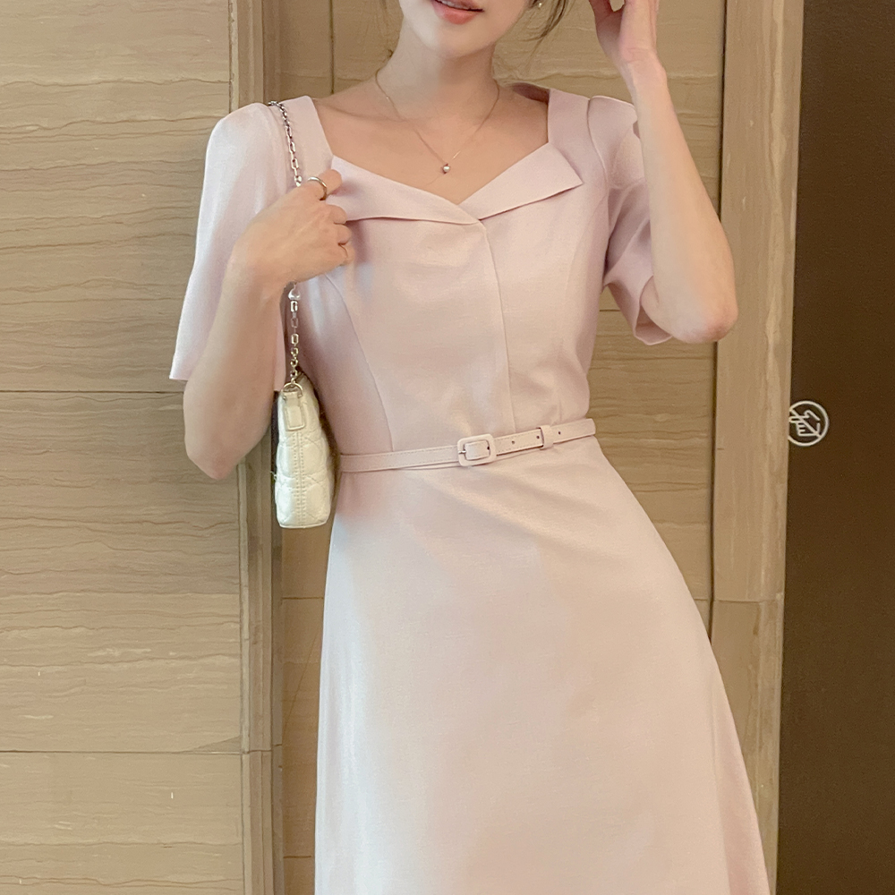 줄리 方形 翻领 A字型 连衣裙(+腰带)