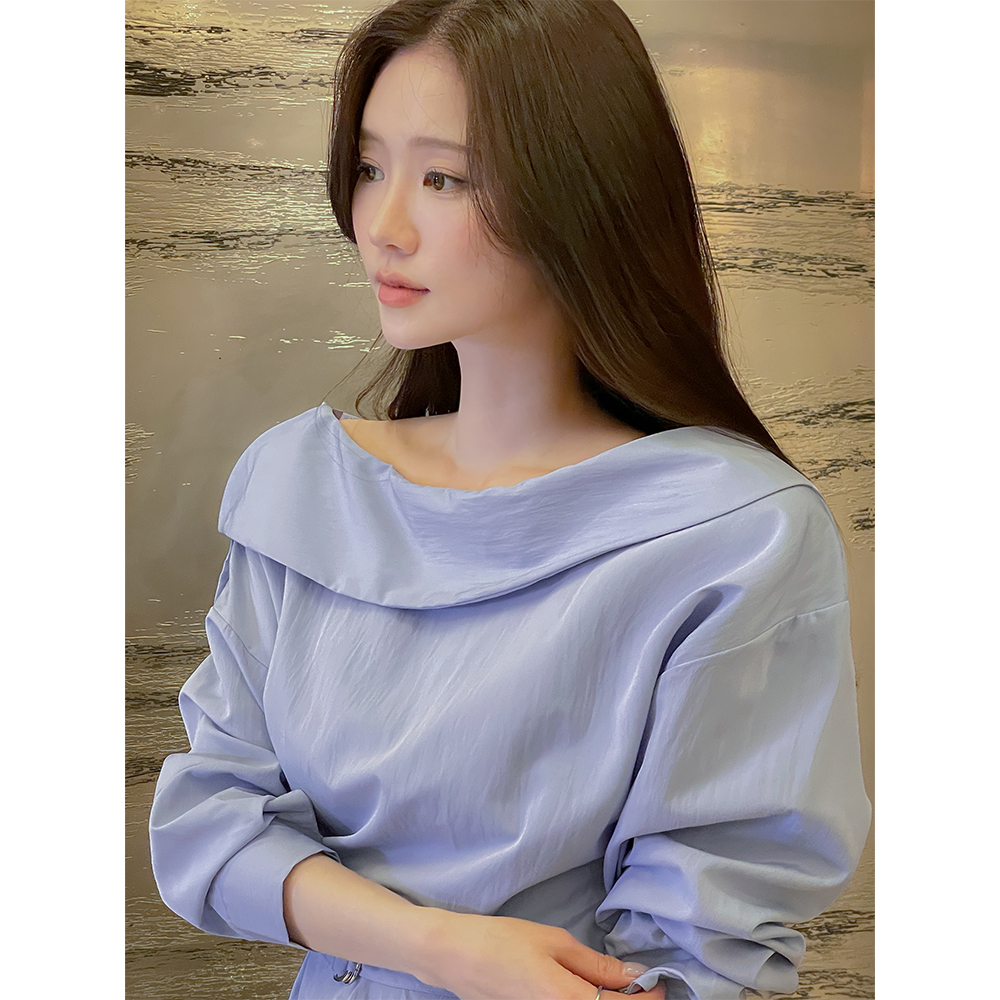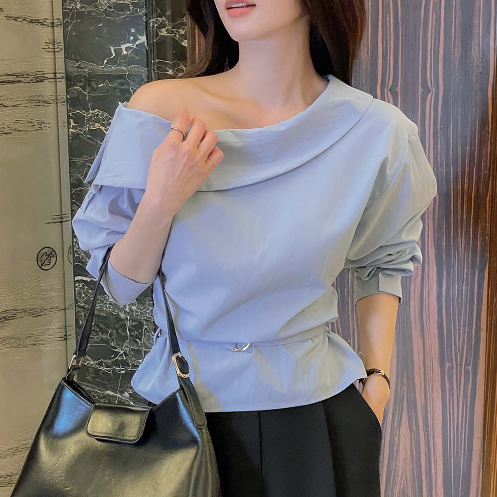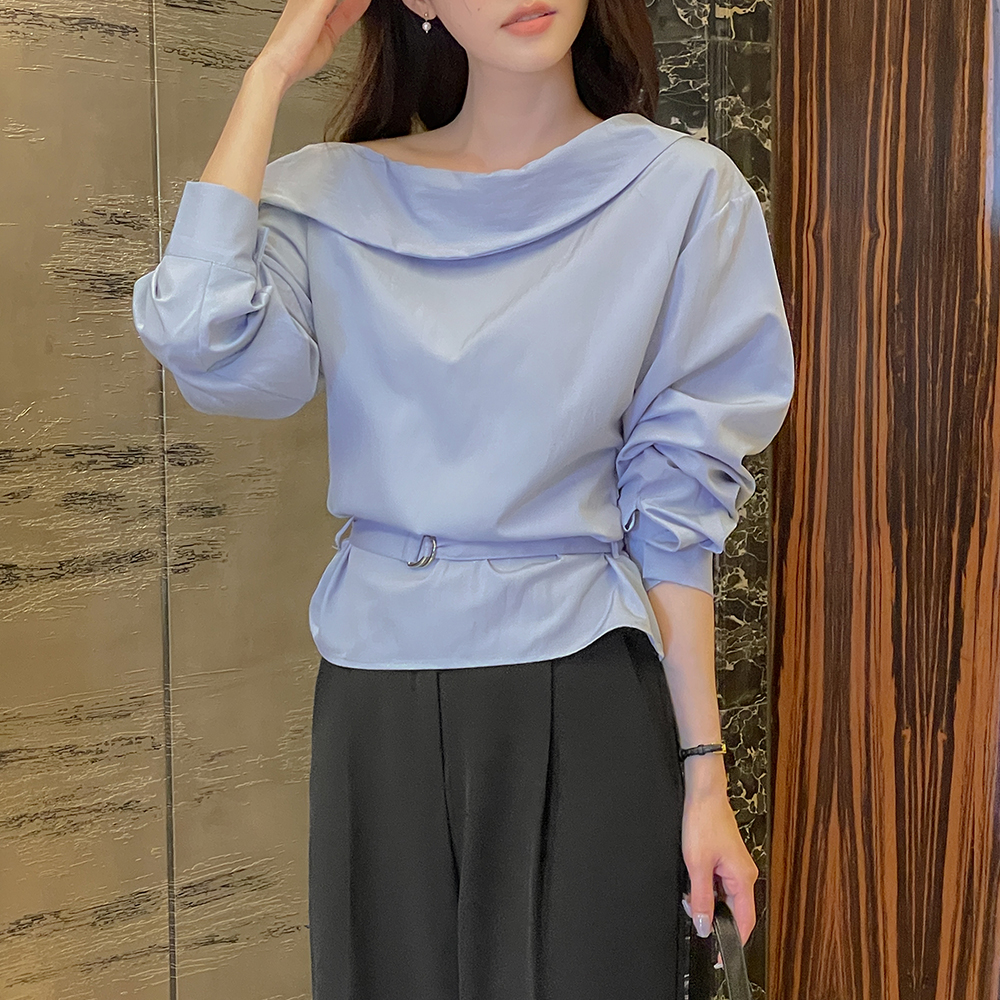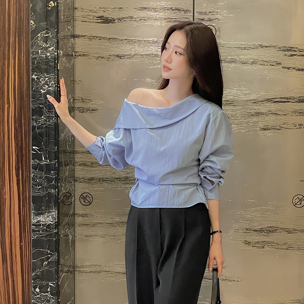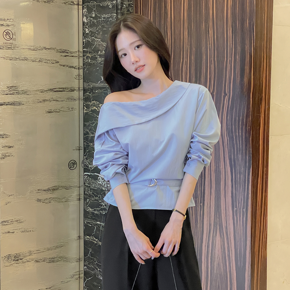 肩部一侧 扣子 褶皱 罩衫(+腰带)