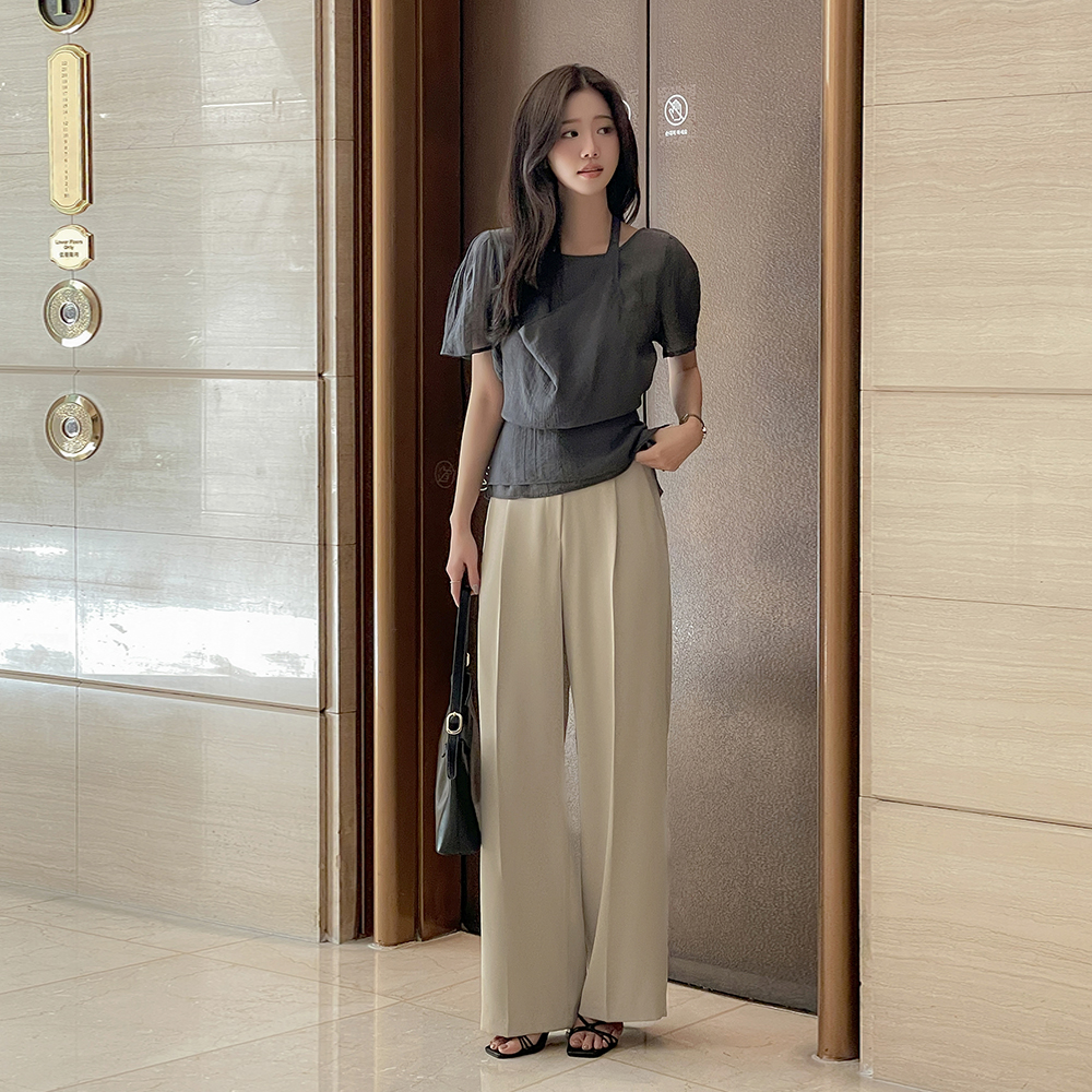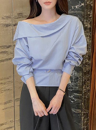 肩部一侧 扣子 褶皱 罩衫(+腰带)
