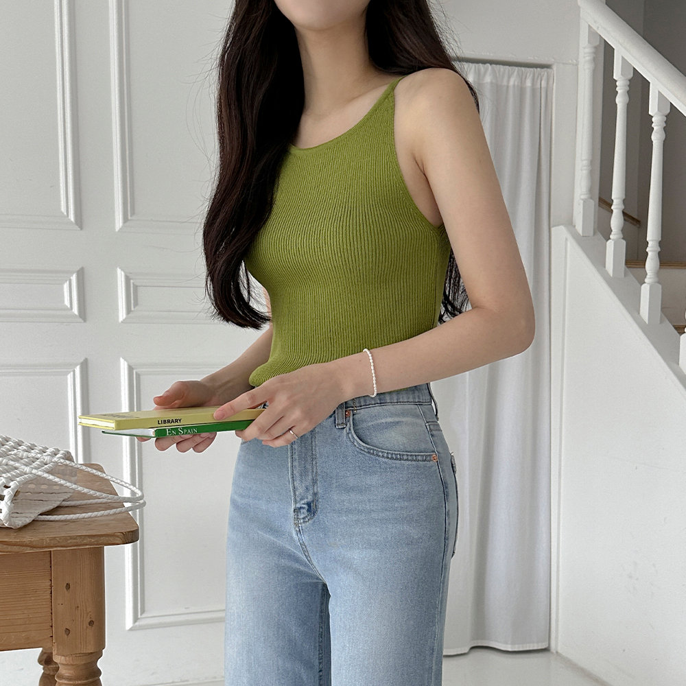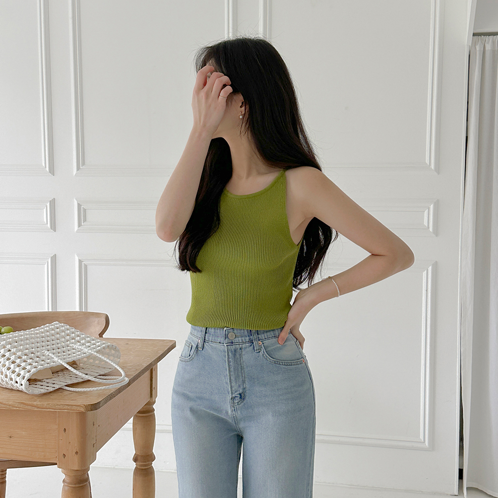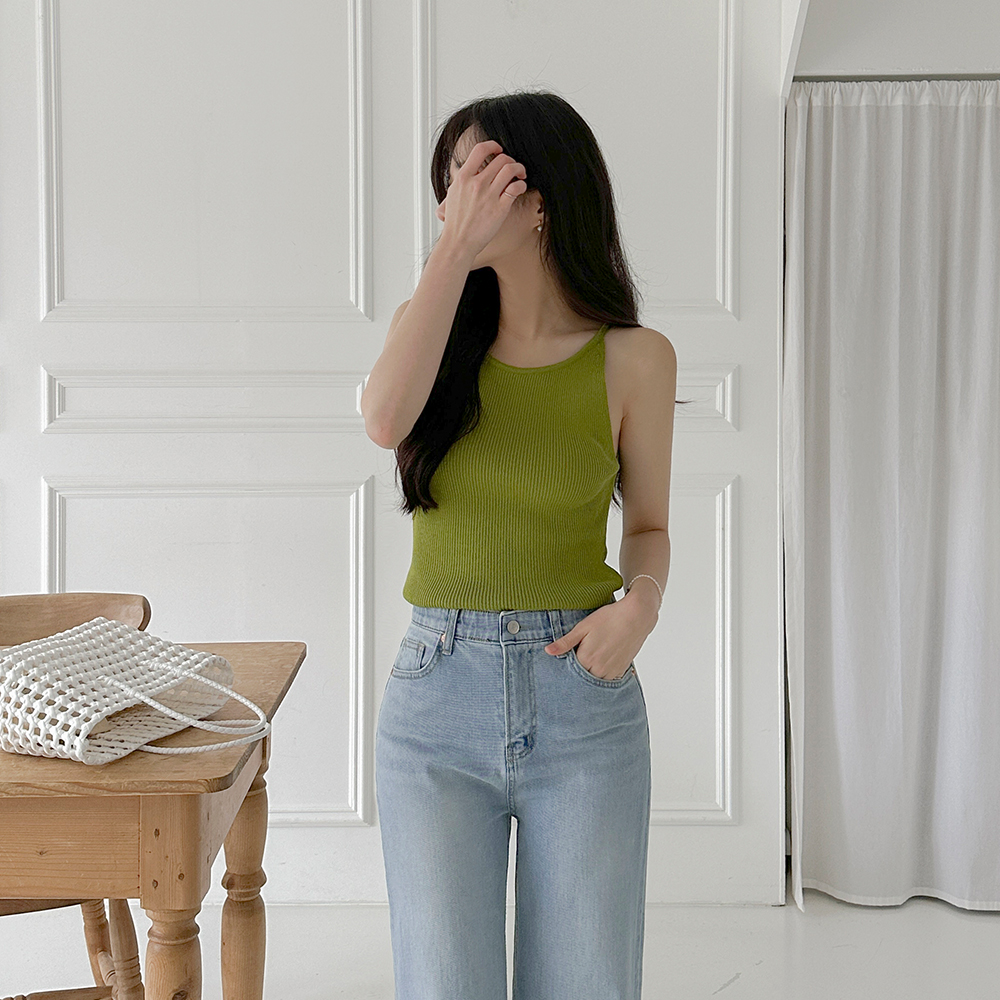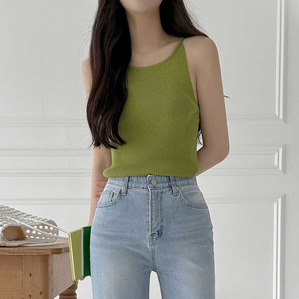 郊游装 袒肩露背领 背心 条绒 针织衫