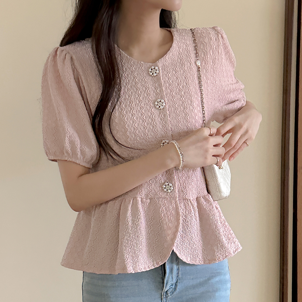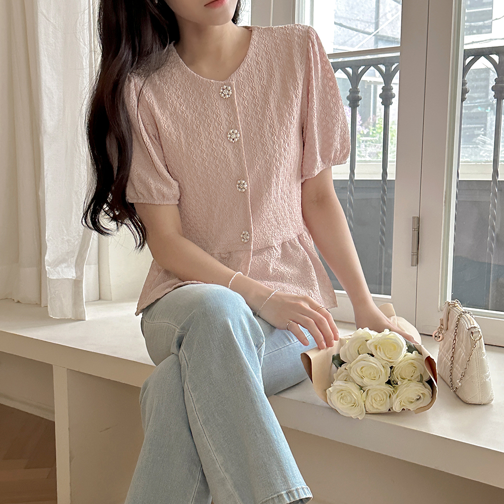[O:neul] 柔丝 莫代尔 苗条 方领 短袖 T恤衫